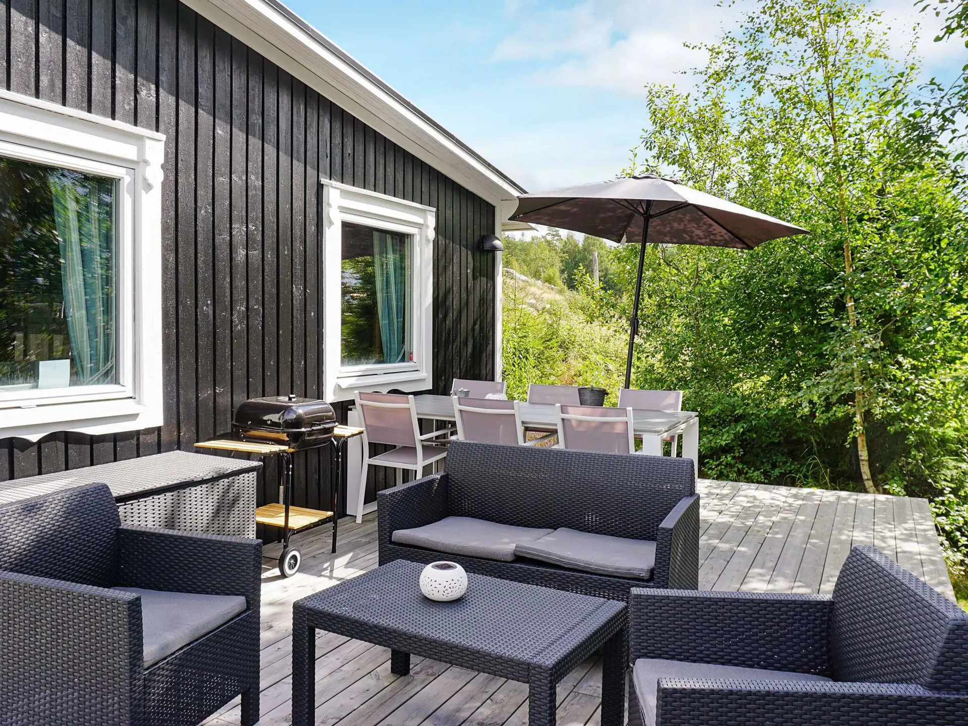 Wenn Sie Inseln und die Umgebung des Schärengartens erleben möchten, gibt es mehrere Bootscharter- und Badebootstouren vom Hafen im Zentrum aus zu mehreren Schäreninseln wie z.B. Furholmen oder Kosteröarna, aber auch ins benachbarte Norwegen. Es ist auch möglich, ein Boot oder Kajak für eigene Erkundungen zu mieten. Für Golfer gibt es mehrere 18-Loch-Plätze in der Umgebung und direkt neben dem Ferienhaus hat man Zugang zu einem Tennisplatz.