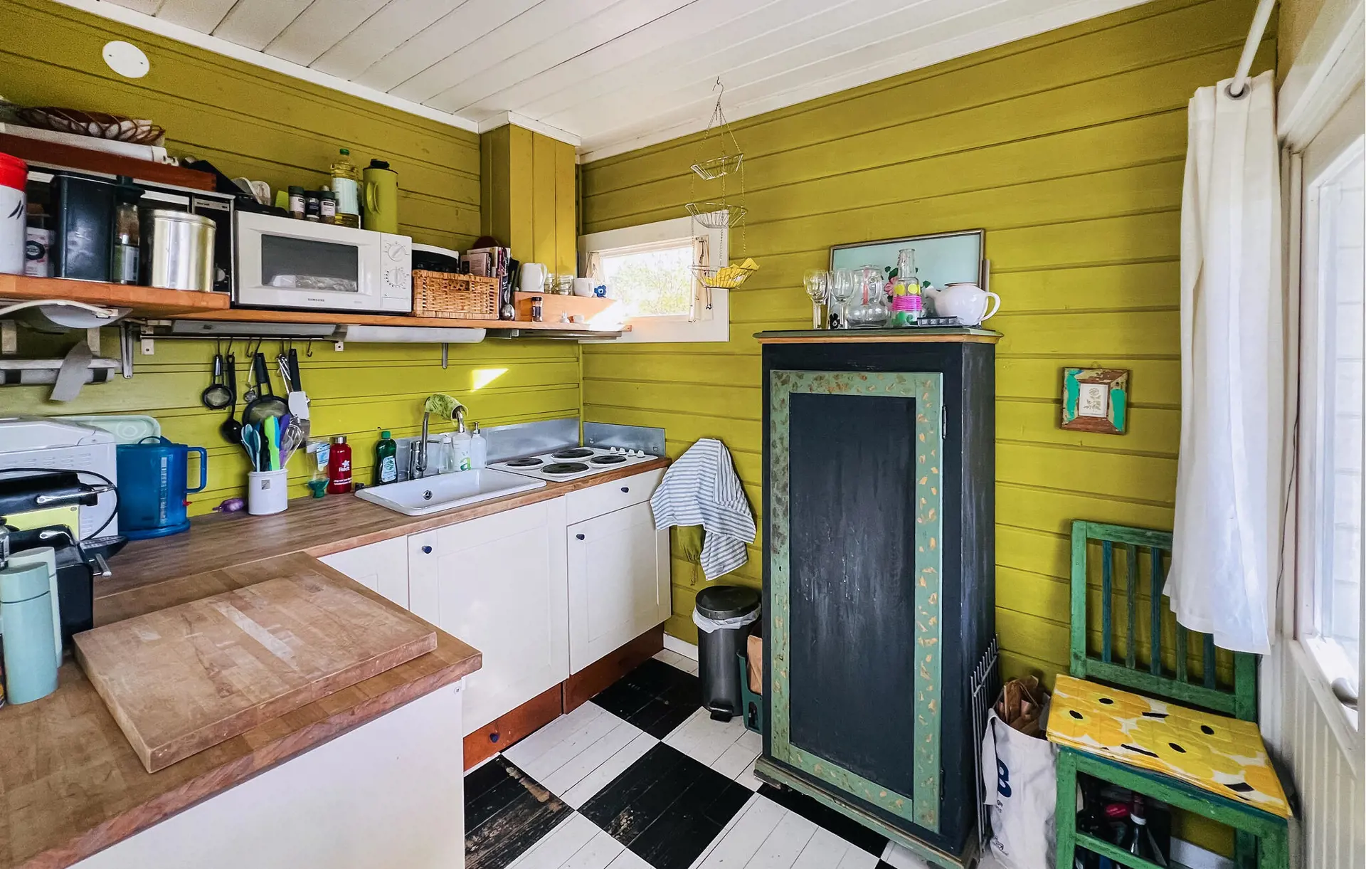 Verbringen Sie entspannte Tage in diesem charmanten Ferienhaus mit Kamin und Veranda.
