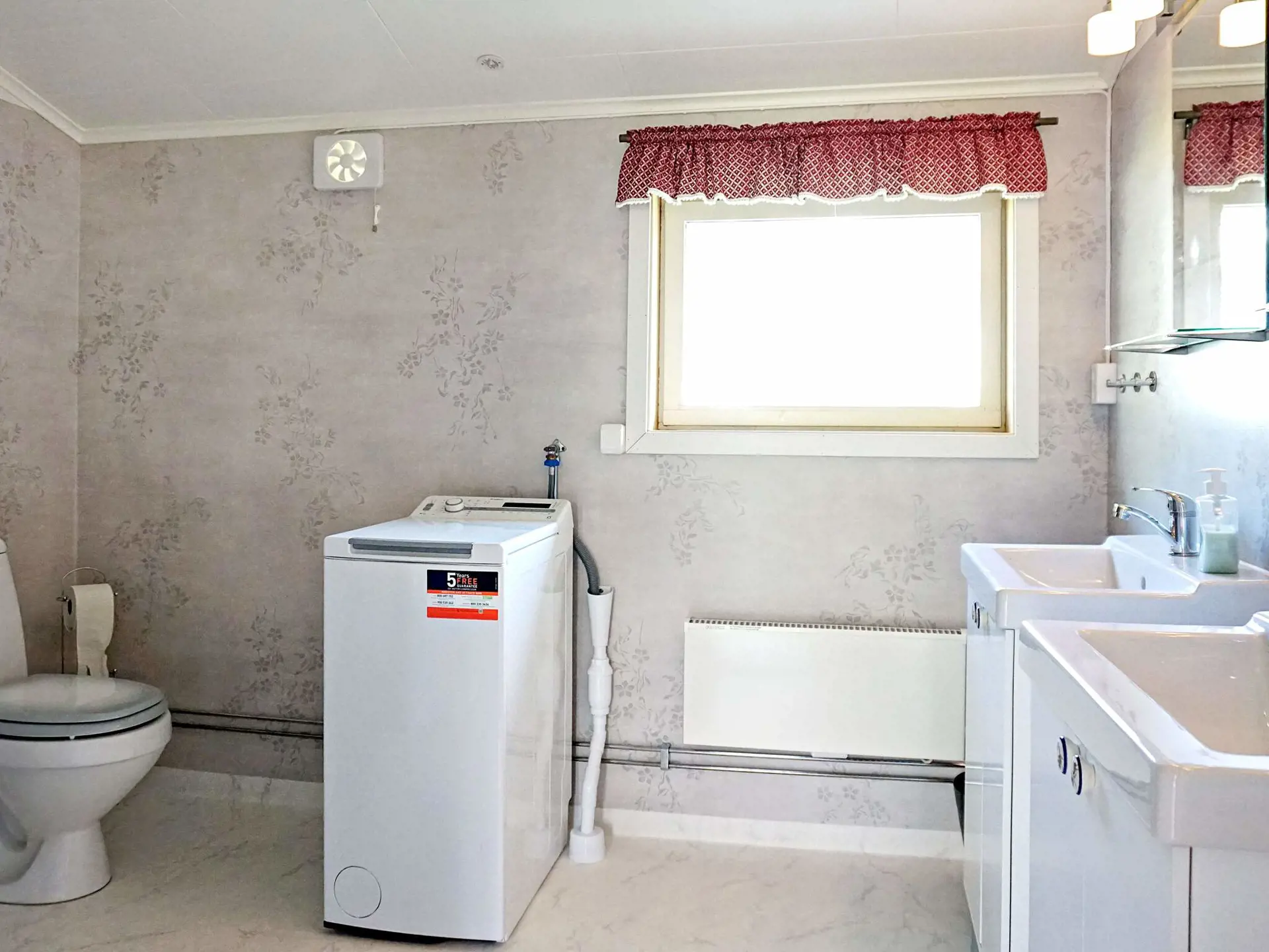 Das Ferienhaus ist ebenerdig. Über eine überdachte Terrasse gelangen Sie zum Eingang. Im Inneren erwartet Sie eine offene Küche mit Wohnzimmer. Die Küche ist mit Herd, Kühl-/Gefrierschrank, Mikrowelle, Kaffeemaschine und Wassersprudler ausgestattet. Das Wohnzimmer verfügt über einen Essbereich und ein Schlafsofa sowie Kabel-TV mit ca. 10 Sendern zusätzlich zum Basisangebot und Netflix. Das Badezimmer ist mit einer Dusche und einer Waschmaschine ausgestattet.