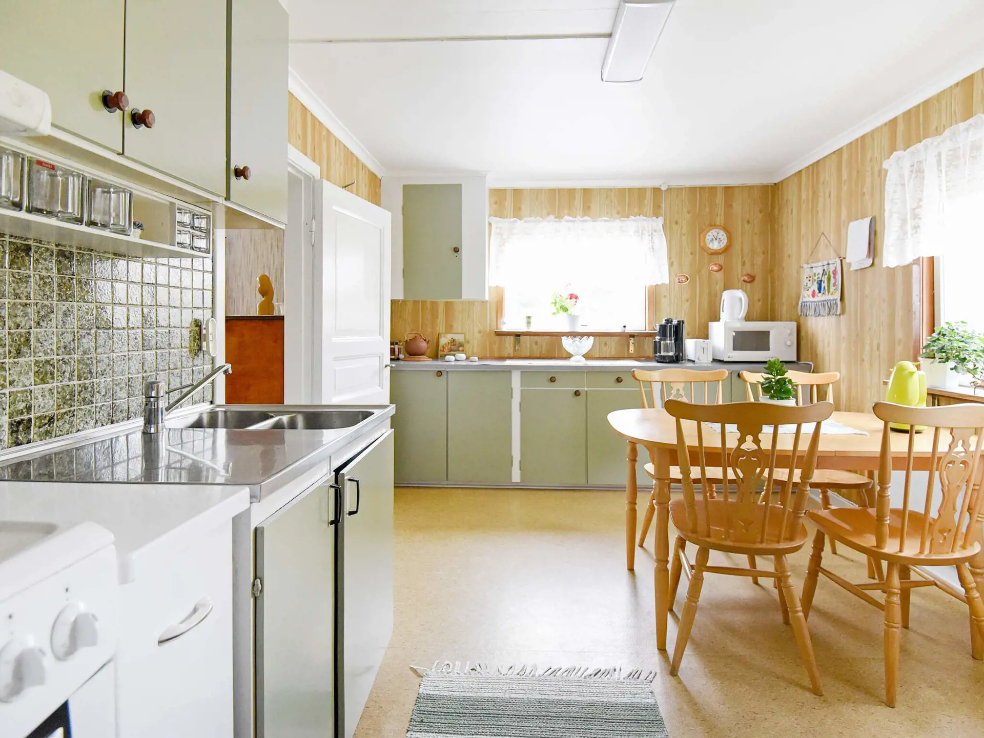 Eine weniger befahrene Str. muss überquert werden, um ans Seeufer zu gelangen. Etwa 1 km vom Haus liegt der nächste Badestrand mit seichtem Sandufer und Badesteg. Gepflegtes Interieur im Haus mit einer wunderbar hellen Küche. Geräumiges Wohnzimmer, aufgeteilt in 2 Bereiche, die durch eine breite Öffnung miteinander verbunden sind. Dadurch kann man sich ungestört in dem einen Teil aufhalten, während im anderen z.B. TV geschaut wird. Ihr nächster Nachbar ist der Eigentümer.