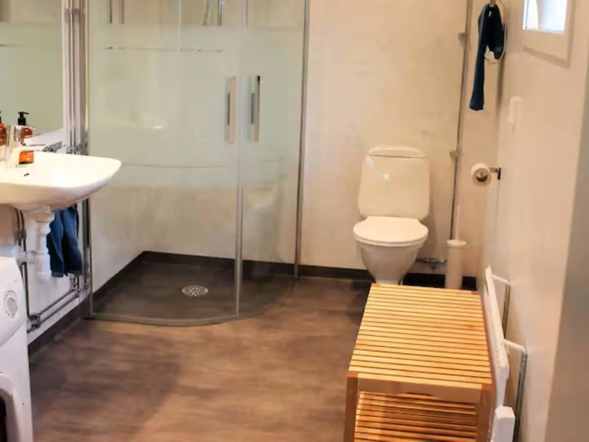 Das Ferienhäuschen bietet ein separates Schlafzimmer mit einem komfortablen Doppelbett und ein modernes Badezimmer mit WC, Dusche, Waschbecken und Waschmaschine. Die voll ausgestattete Küche verfügt über einen schönen Esstisch, der bei Bedarf verlängert werden kann.