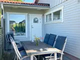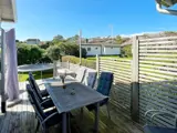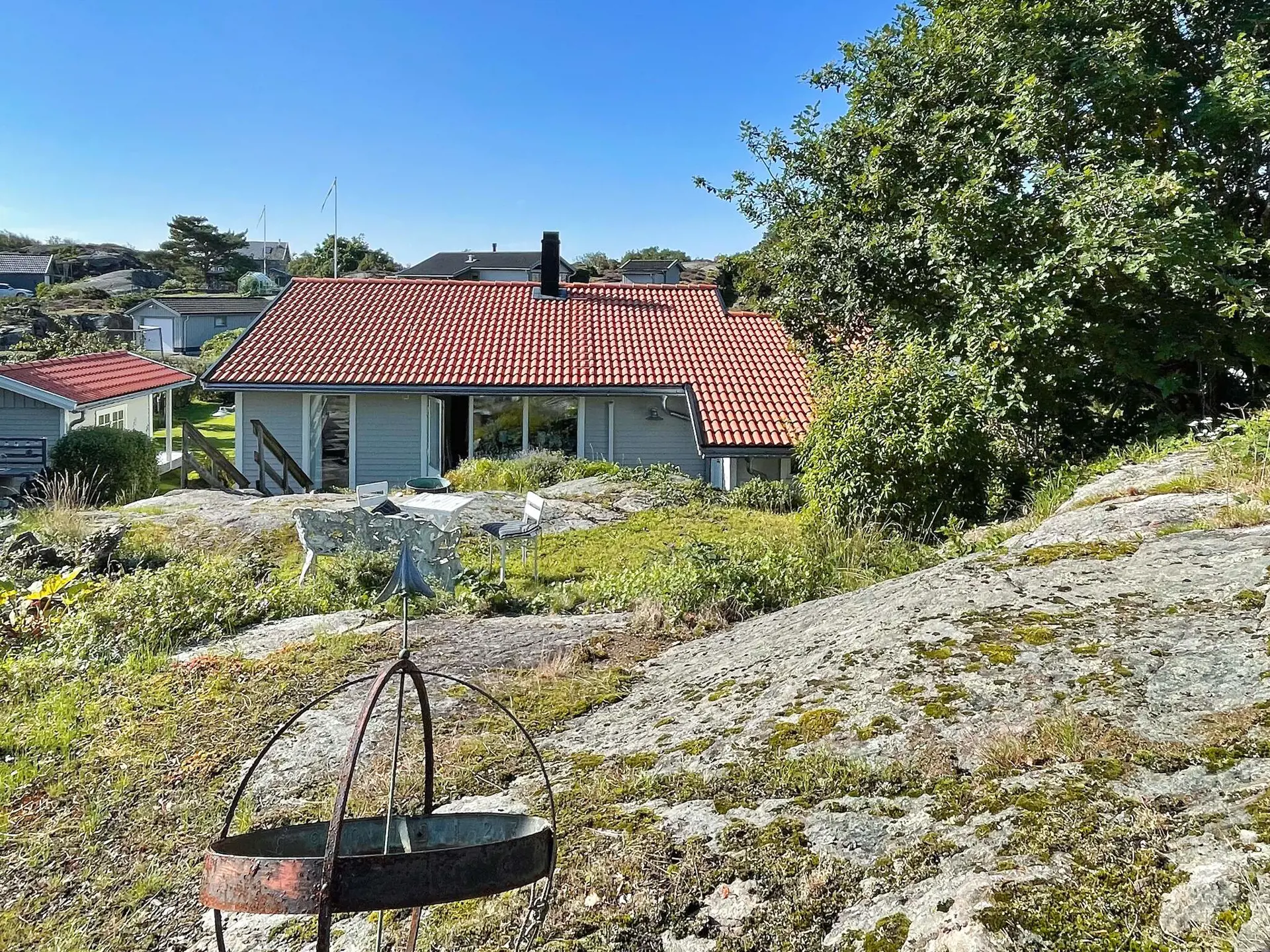 Hier wohnen Sie in einer ruhigen und kinderfreundlichen Ferienhaussiedlung mit fußläufiger Entfernung zur Küste. Das Ferienhaus liegt auf einem schönen Grundstück mit Spielwiese sowie einem hügeligen Naturgrundstück mit mehreren Terrassen auf Felsvorsprüngen. Eine schöne Aussicht haben Sie vom Berg oberhalb, der das Grundstück hinter dem Haus begrenzt. An der Vorderseite des Hauses befindet sich eine schöne Terrasse mit Gartenmöbeln und einer Loungegruppe für sonnige Tage. Hier können Sie an der Sonne oder im Schatten sitzen und entspannen.