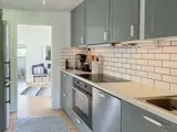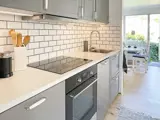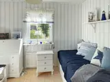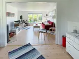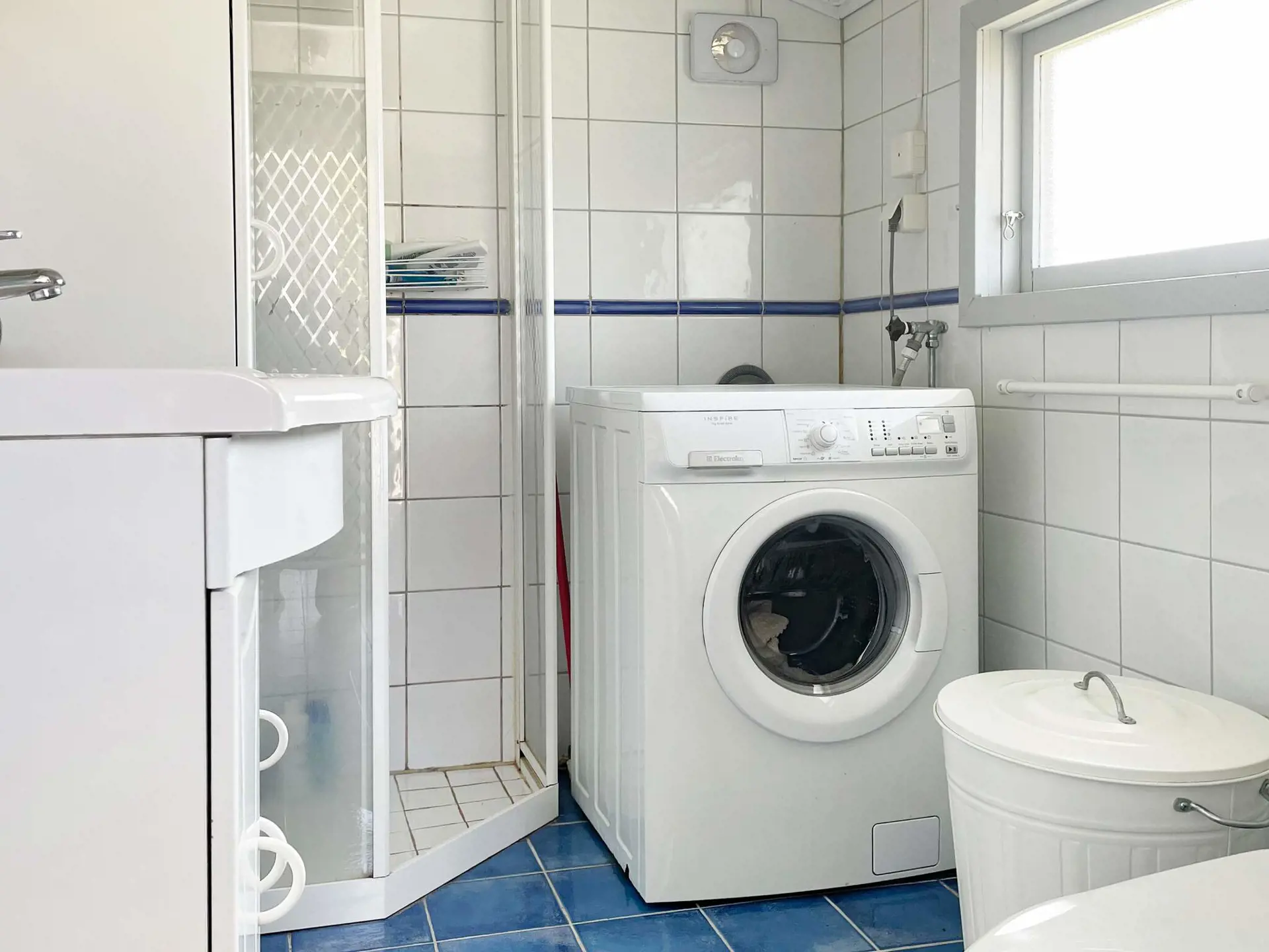 Das ebenerdige Ferienhaus bietet eine moderne Küche mit Essbereich und Ausgang nach hinten, ein Wohnzimmer mit TV-Ecke (Chromecast, keine festen Sender) und einen wärmenden Holzofen. Dazu gibt es vier Schlafzimmer, davon ein Doppelzimmer mit Zugang zur Terrasse, eines mit Einzelbett und Schreibtisch, ein drittes mit Etagenbett und das vierte mit einem modernen ausziehbaren Doppelbett (sog. Daybed). Badezimmer mit Dusche, WC und Waschmaschine vorhanden. Das Haus verfügt auch über Glasfaser.