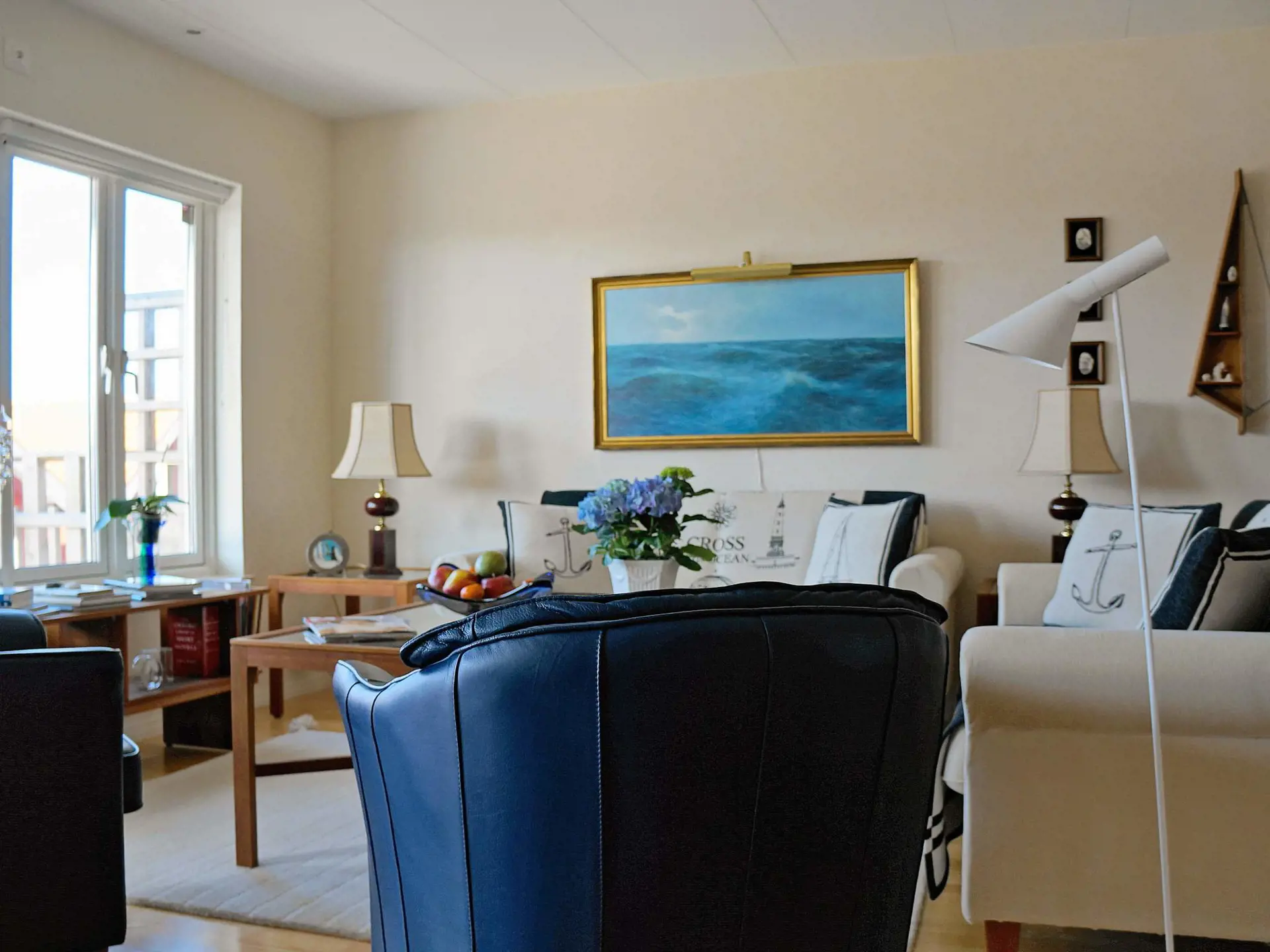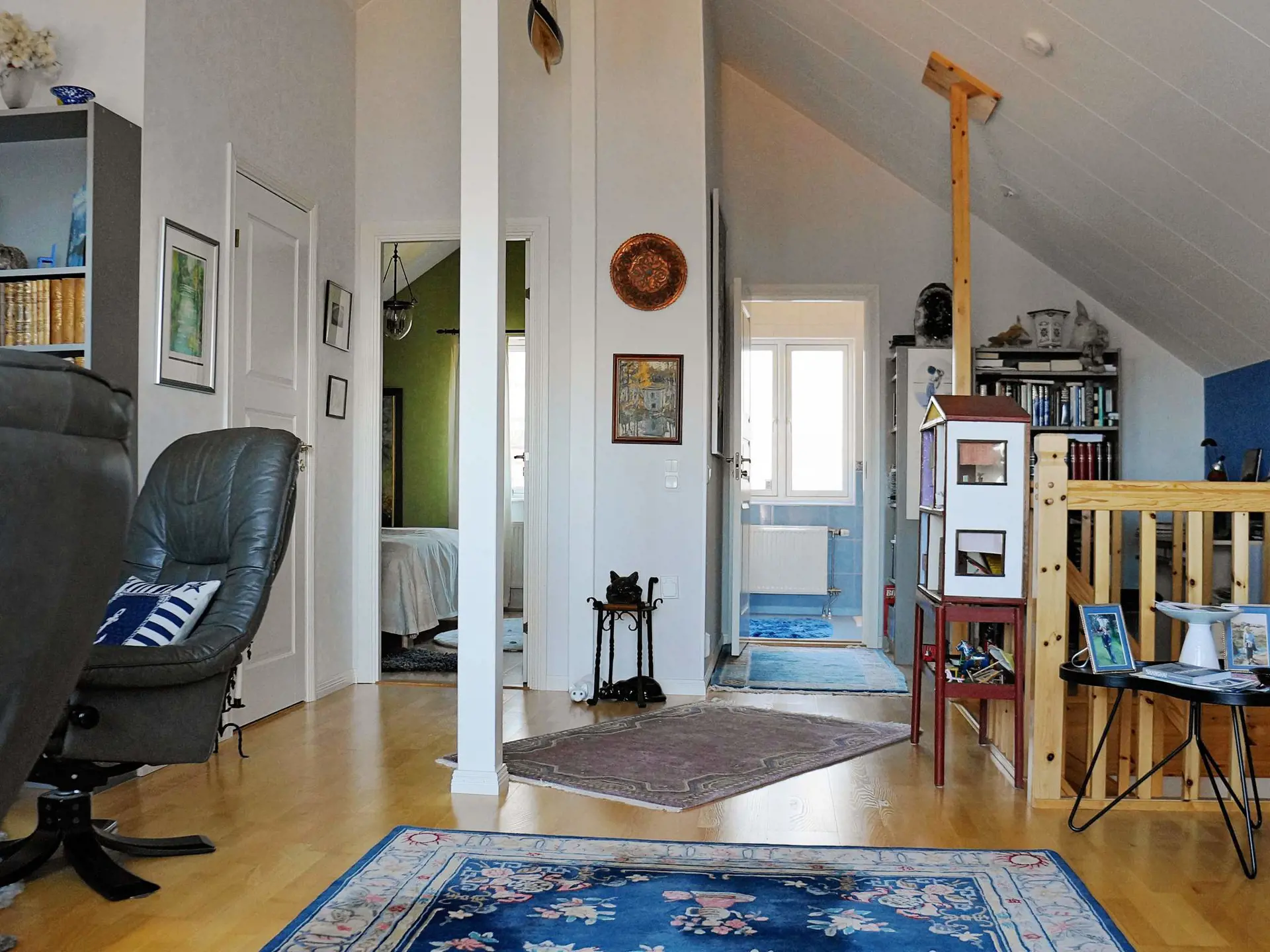 Das Ferienhaus hat 2 Etagen. Im Parterre ansprechende Küche mit Essecke und geräumiger Wohnbereich mit Esstisch und Zugang zur schönen Veranda davor mit schützender Überdachung durch den Balkon. Zudem Bad m. Dusche/WC und praktische Waschküche auf dieser Etage. Eine Treppe höher findet man das sogenannte Atelier, ein Aufenthaltsbereich mit Dachschrägen und luftiger Raumhöhe. Hier befindet sich die TV-Ecke mit bequemer Schlafcouch. Zudem Zugang zum Balkon mit wunderbarer Panorama-Aussicht zu Küste und Meer! Außerdem geräumiges SZ mit DB und attraktives Bad m. Dusche und Whirlwanne für 1 Erw. oder 2 Kinder auf dieser Etage.
