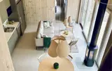 Bewegen Sie sich hinaus auf die großzügige Terrasse, die nahtlos an den Wohnbereich anschließt. Die weiten Glasfronten verbinden Innen und Außen und eröffnen einen wunderbaren Ausblick auf die umliegenden Bäume und das Wasser. Genießen Sie die frische Luft, beobachten Sie die natürliche Umgebung oder setzen Sie sich mit einer warmen Decke auf einen der Stühle und lauschen Sie den Geräuschen der Natur. Nutzen Sie zudem die gemeinschaftliche Sauna, die Ihnen wohltuende Wärme nach einem Tag an der Küste bietet.