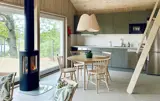 Treten Sie ein und lassen Sie sich von dem offenen Wohnbereich mit seinen bodentiefen Fenstern begeistern. Helle Holzwände und ausgewählte Möbel erzeugen eine ruhige Atmosphäre. Nutzen Sie die gut ausgestattete Küche für gemeinsame Mahlzeiten und entspannen Sie sich anschließend am Kaminofen, während Sie den Blick ins Grüne schweifen lassen. In der bequemen Sofaecke verweilen Sie bei einem Buch oder planen den nächsten Ausflug.