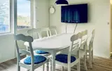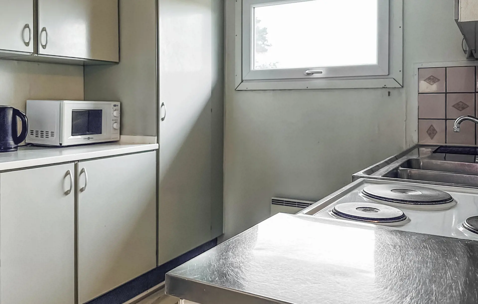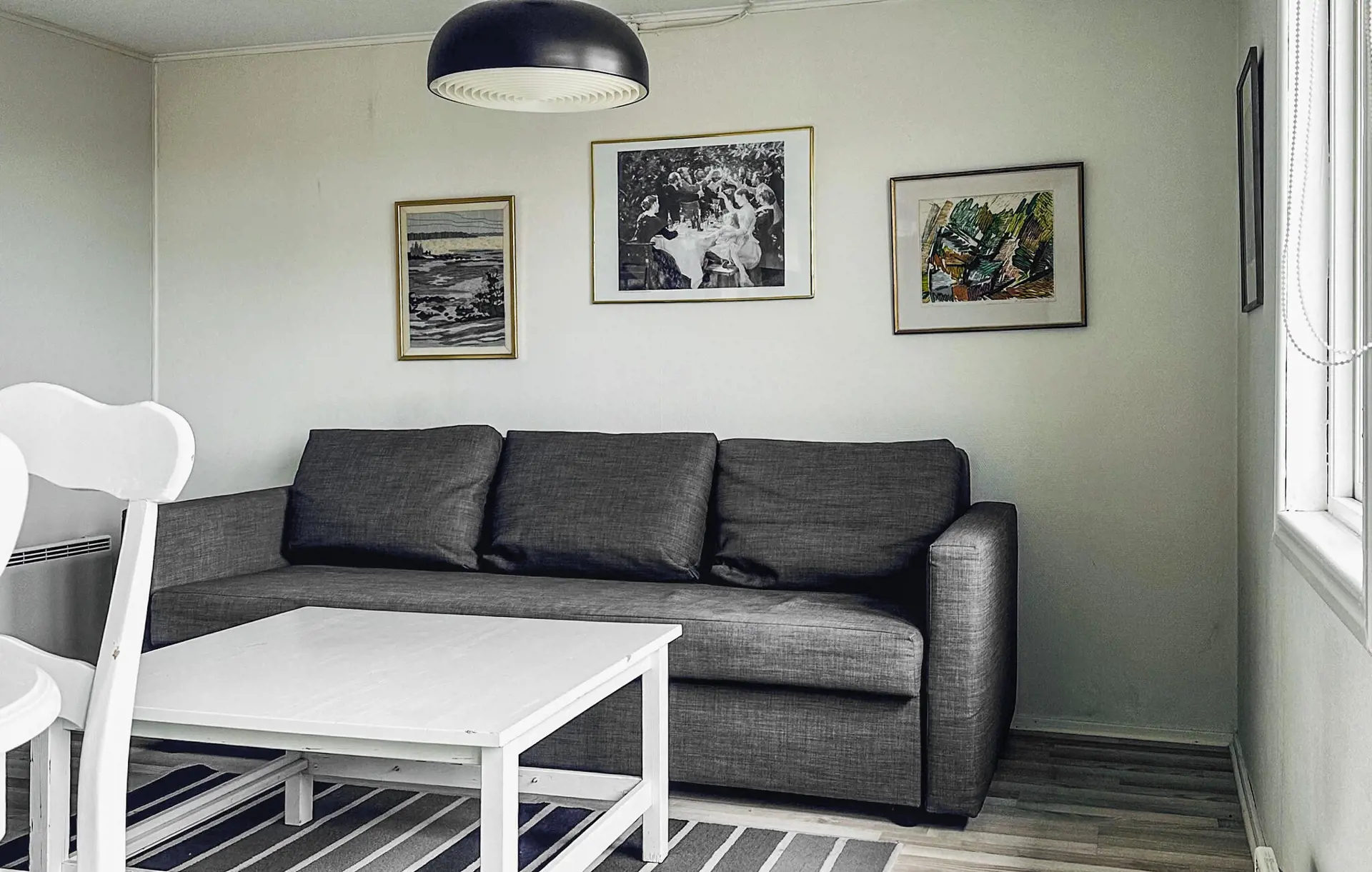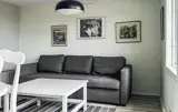 Betreten Sie den Wohnraum und richten Sie sich auf dem bequemen Sofa ein, während sanftes Licht durch die Fenster fällt. Der schlichte Einrichtungsstil schafft eine angenehme Atmosphäre. Nehmen Sie am großen Esstisch am Fenster Platz und nutzen Sie ihn für gemeinsame Mahlzeiten oder für eine entspannte Spielrunde. Bereiten Sie in der funktionalen Küche unkompliziert Ihre Gerichte zu. Der Fernseher bietet Ihnen Unterhaltung, wenn Sie den Abend ruhig ausklingen lassen möchten.