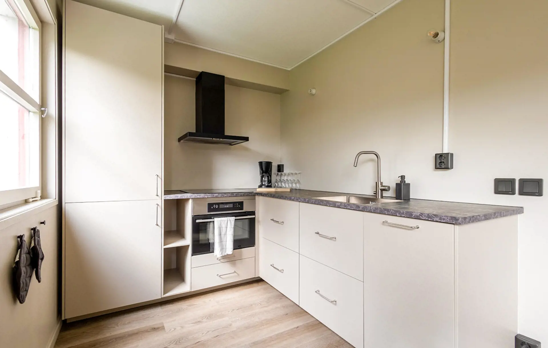 Diese Wohnung ist der ideale Rückzugsort für eine Auszeit vom Alltag. Dezente Farben, bequemes Mobiliar und ein schöner Blick ins Grüne sorgen dafür, dass Sie sich von Anfang an zuhause fühlen. Entspannen Sie sich auf dem Sofa mit einer Tasse Kaffee, lauschen Sie einem interessanten Podcast oder vertiefen Sie sich in ein gutes Buch.