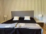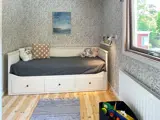 Rechts vom Flur befinden sich zwei Schlafzimmer. Das erste verfügt über ein Tagesbett, dessen Matratze Sie ausziehen können, wodurch eine bequeme Liegefläche mit 160 cm Breite entsteht. Es gibt auch Spielzeug für die Kinder und Brettspiele. Das andere Zimmer bietet ein Doppelbett mit 180 cm Breite und eine helle, angenehme Einrichtung. Das Badezimmer ist ebenfalls hell und verfügt über eine Duschkabine, WC und Waschbecken.