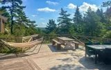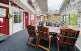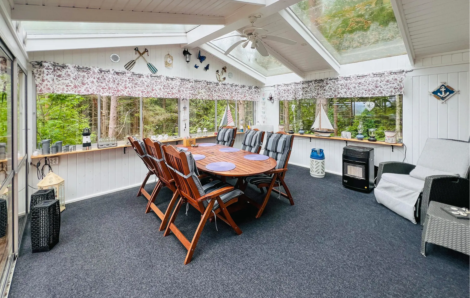 Die große Veranda ist an sonnigen Tagen der ideale Ort für ein Frühstück im Freien. Atmen Sie die wohltuende Waldluft ein, lassen Sie Ihre Kinder spielerisch die Natur erkunden und entfachen Sie den Grill.