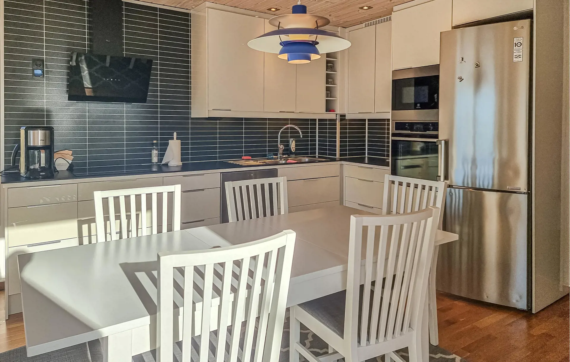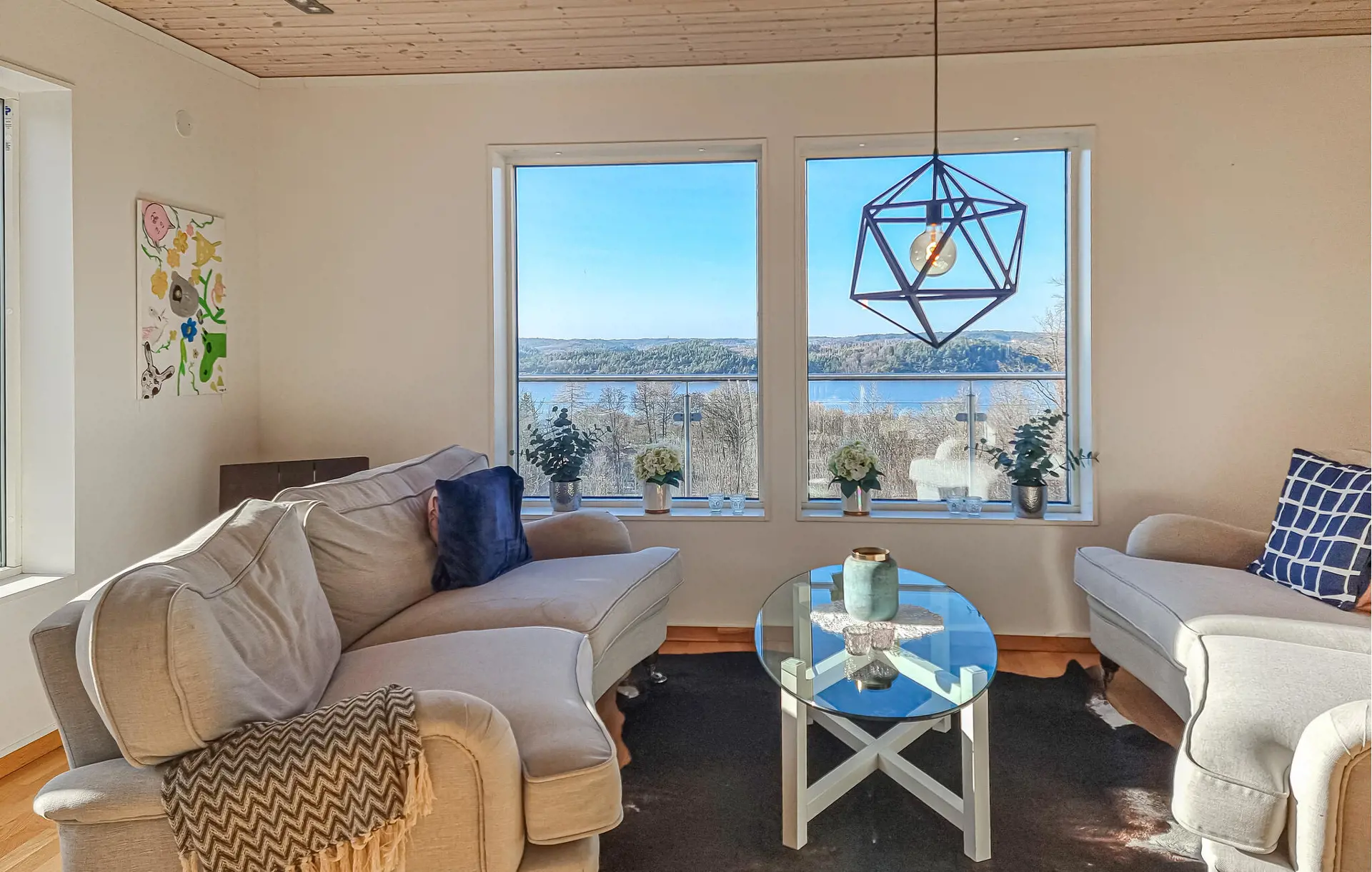 Treten Sie hinaus auf die großzügige Terrasse und genießen Sie den weiten Blick über den Fjord. Lassen Sie den Tag im Whirlpool auf der Terrasse ausklingen und entspannen Sie im warmen Wasser mit Blick über die Landschaft. Die erhöhte Lage des Hauses sorgt dabei für besonders schöne Ausblicke und eine ruhige Atmosphäre.