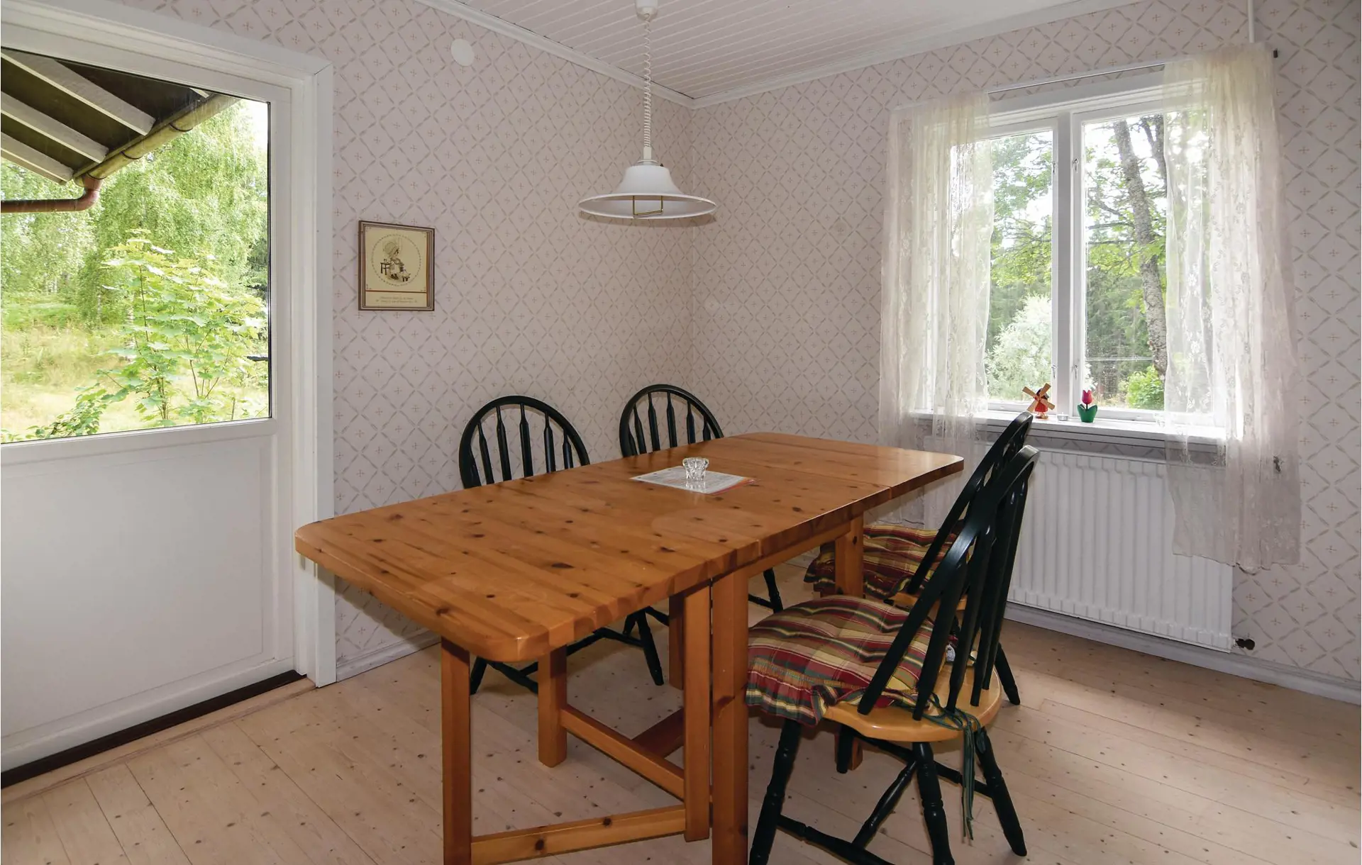 Abgeschieden gelegenes Holzhaus am Waldrand. Liebevoll renoviert mit guten Standard und schönen Möbeln. Gut für 2 Familien oder größere Gesellschaften geeignet. Viel Wild, Beeren und Pilze.