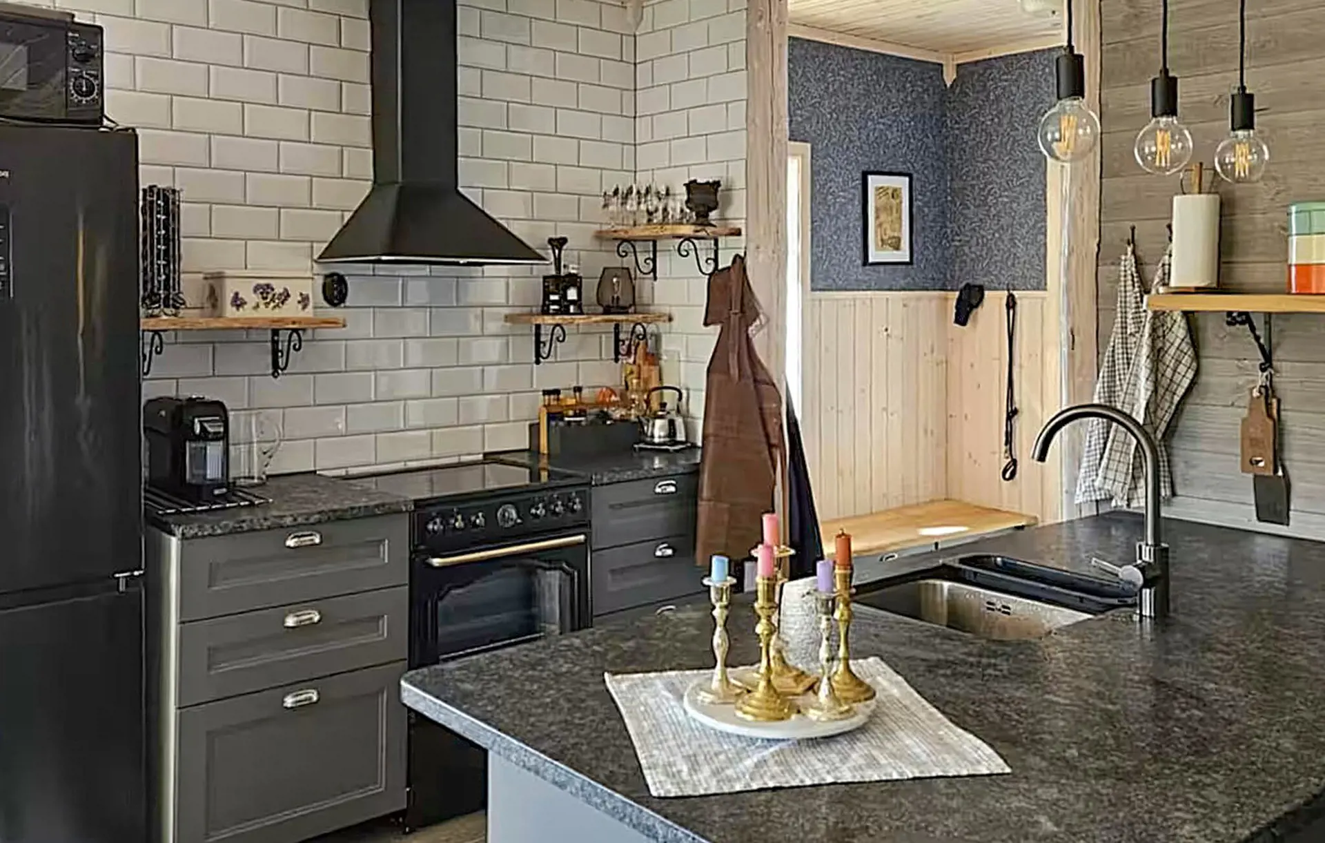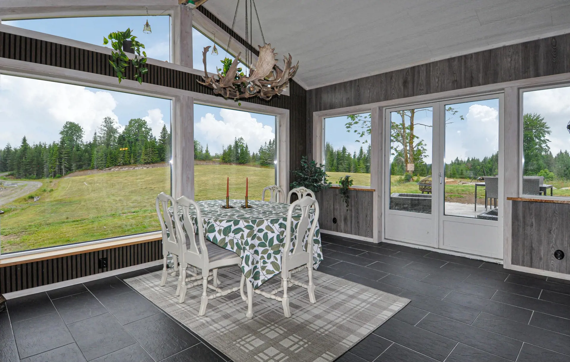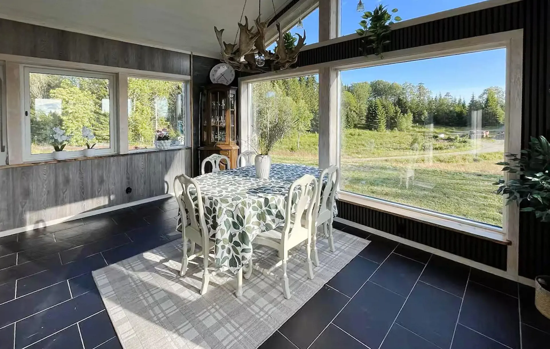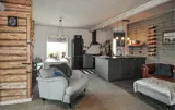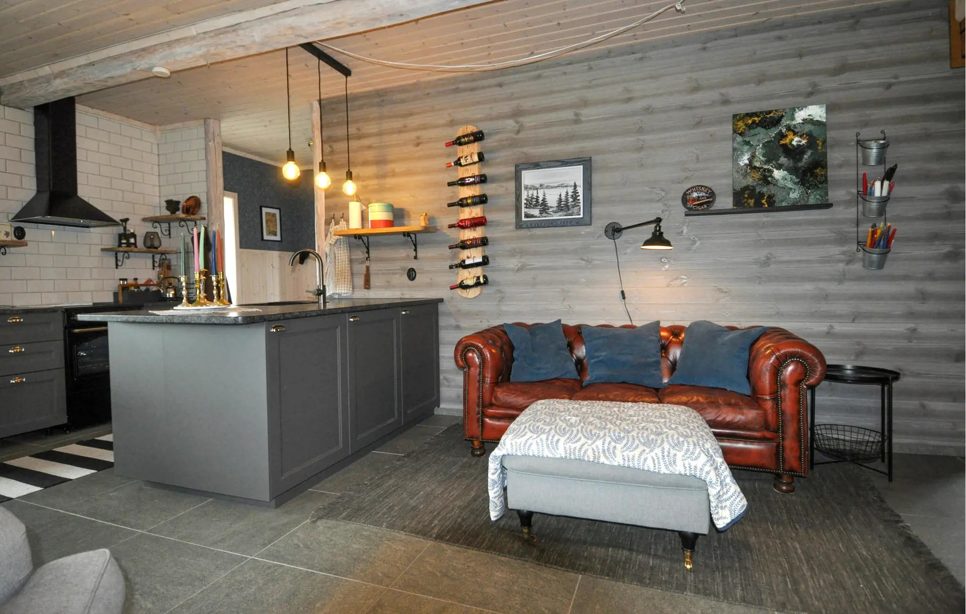 In diesem gemütlichen Ferienhaus kommen Sie schnell zur Ruhe und können neue Kraft sammeln. Das helle, verglaste Wohnzimmer bietet eine traumhafte Aussicht über die weite Landschaft. Warmes Holz, eine Natursteinoptik und stilvolle Sofas schaffen eine entspannte und beruhigende Atmosphäre. Vertiefen Sie sich in Ihre Urlaubslektüre, kochen Sie gemeinsam in der modernen Küche oder entspannen Sie sich bei wohliger Wärme am Kaminofen bei einem Glas Wein.