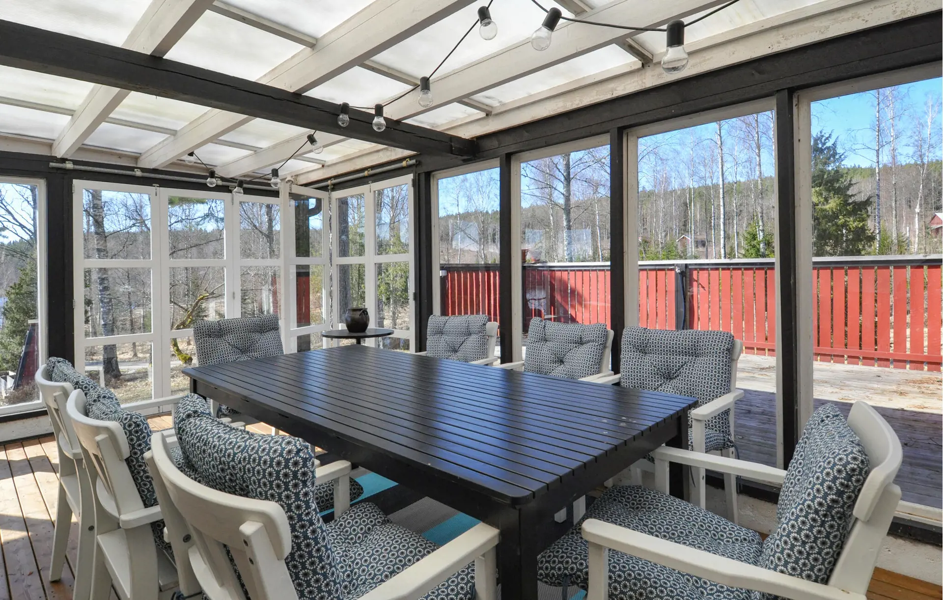 Diese geräumige Ruheoase begeistert mit einer gelungenen Mischung aus rustikalem Charme und modernem Komfort. Hier erwartet Sie eine idyllische Auszeit, in der Sie stets den malerischen See Östra Silen im Blick haben. Bereiten Sie angelfrischen Fisch zu und speisen Sie im lichtdurchfluteten Essbereich oder im einladenden Wintergarten. Nutzen Sie die Ruhe für behagliche Lesestunden im gemütlichen Wohnzimmer oder lassen Sie den Tag mit einem Brettspiel ausklingen.