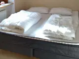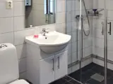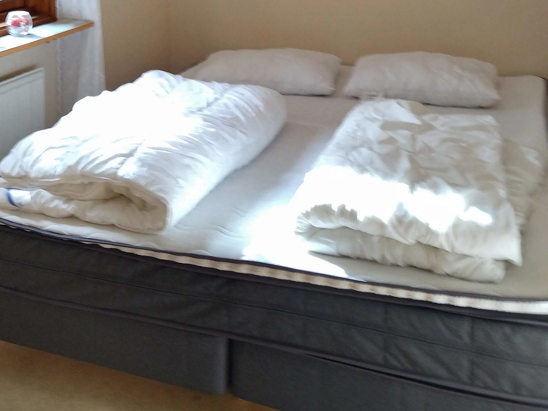 Das Haus verfügt über insgesamt sechs Schlafplätze in Betten, verteilt auf drei Schlafzimmern. Zwei der Schlafzimmer bieten jeweils ein Doppelbett, das dritte Schlafzimmer zwei Einzelbetten. Das Badezimmer ist komplett gefliest, hell und renoviert mit WC, Waschbecken und Dusche.