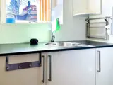 In the apartment there is a cozy room with a double bed (140 cm), a modern bathroom complete with shower, toilet and sink. The kitchen is fully equipped where you can prepare your meals. Everything you need is here, including coffee maker, fridge and freezer, stove, oven and microwave. A nice living room with room for four people at the dining table. The large sofa can easily be converted into a sofa bed. There is also a TV here. Outside the apartment there is a grill where you can enjoy barbecue evenings.