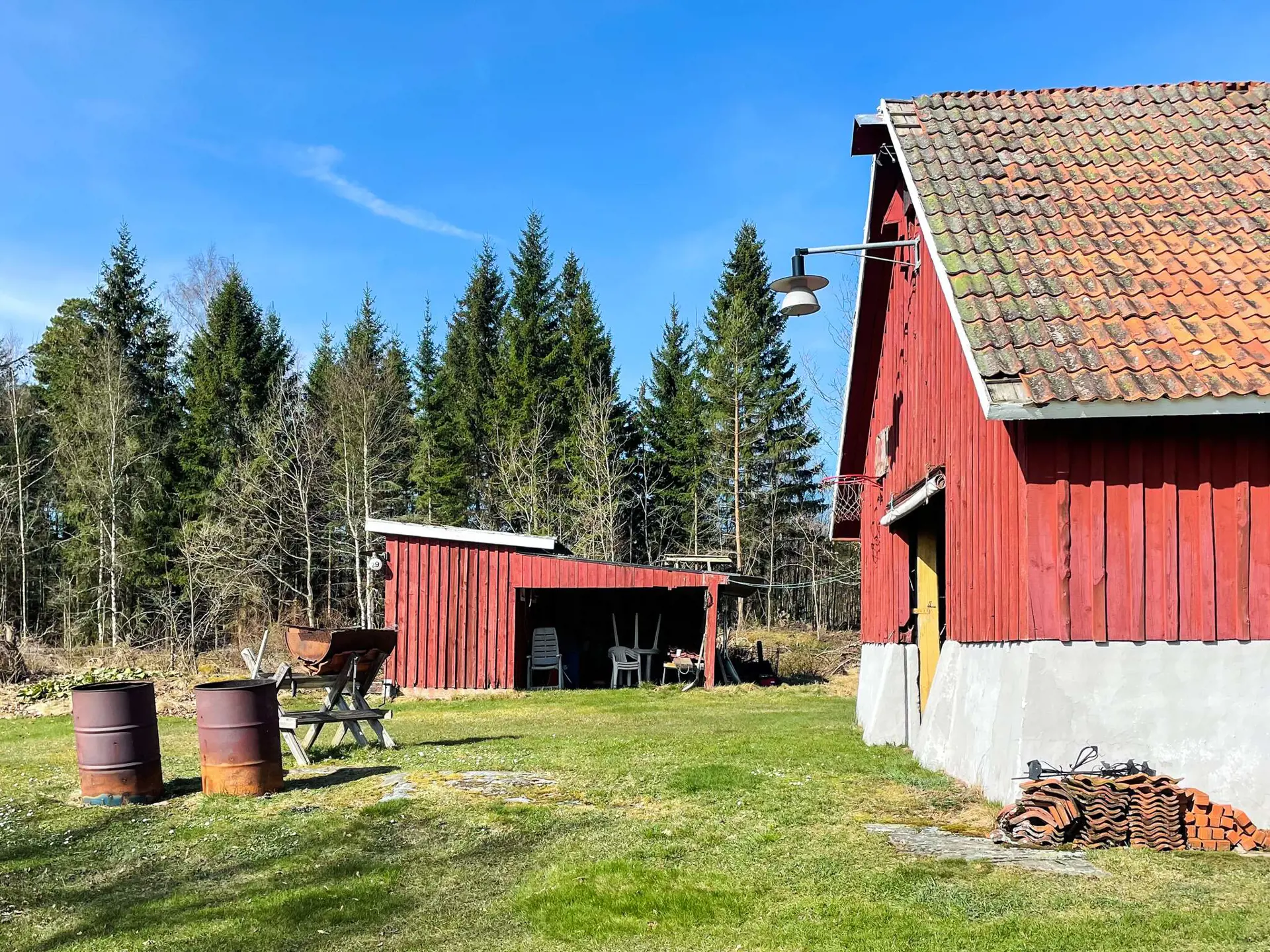 Bitte nehmen Sie Rücksicht und beachten Sie, dass alle Geräte und die anderen Gebäude auf dem Hof nur zur privaten Nutzung bestimmt sind. Wenn Sie einen Hund haben, können Sie ihn gerne mitbringen, aber lassen Sie ihn nicht frei im Wald und auf dem Land herumlaufen, da es sich um ein tierreiches Gebiet handelt. Im Wald hinter dem Haus gibt es viele Hirsche, Hasen, Elche und Füchse.
