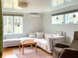 Sie können im kleinen Holzofen Feuer machen, aber seien Sie vorsichtig. Drinnen befindet sich ein Wohnzimmer mit einem Kachelofen. Auch dieser kann vorsichtig angeheizt werden. Hier befindet sich ein 180 cm breites Doppelbett. Geradeaus befindet sich das Wohnzimmer mit einem gemütlichen Sofa und einem Fernseher, um abends Filme zu streamen. Das Badezimmer wurde 2025 neu renoviert und verfügt über eine Dusche, ein Waschbecken und eine Toilette.