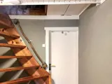 Über die Treppe gelangt man zum Schlafboden mit zwei Schlafzimmern. Ein Zimmer mit zwei Einzelbetten und ein Zimmer mit einem Doppelbett. Hier oben gibt es weitere Dachschrägen.