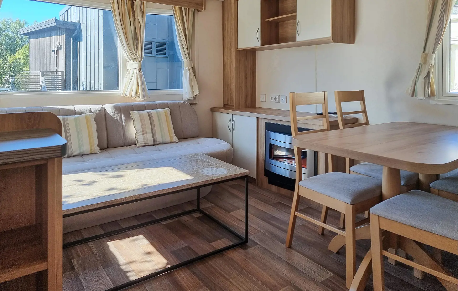 Genießen Sie die ländliche Ruhe und lassen Sie den Alltag hinter sich. Dieses großzügige Holzhaus empfängt Sie mit einer warmen Atmosphäre und bietet viel Platz für gemeinsame Stunden mit der Familie oder Freunden. Dank der individuellen Einrichtung mit liebevollen Details wirkt das ganze Haus persönlich und einladend. Bereiten Sie in der geräumigen Küche leckere Mahlzeiten zu, nutzen Sie die praktische Kochinsel und die umfangreiche Ausstattung. Der offene Wohnbereich mit großem Sofa und gemütlicher Sitzecke lädt zu langen Spieleabenden ein.