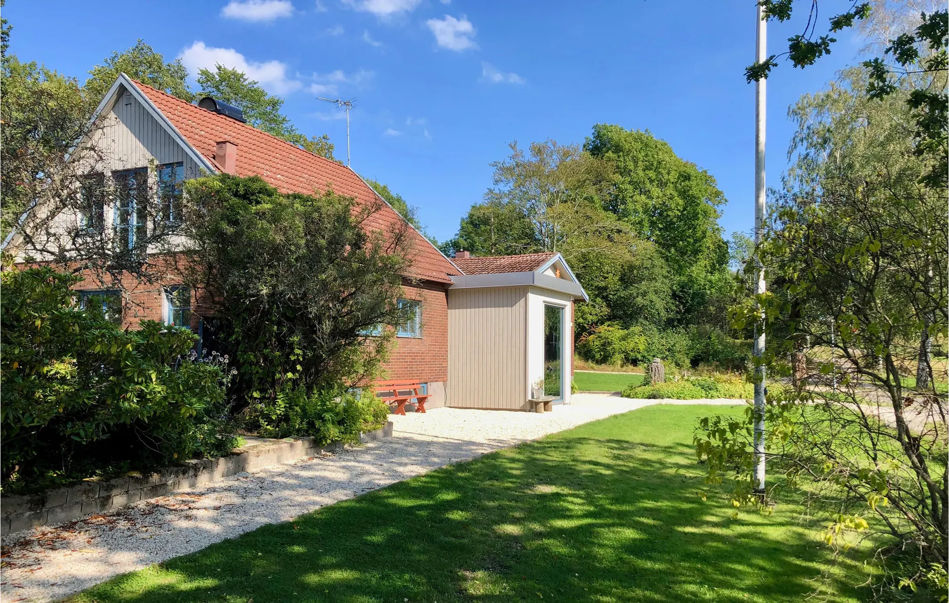 Entspannen Sie auf der großen, schönen Terrasse mit Grill, Abendsonne und Panoramablick auf den See Österbosjön. Ein Ruderboot kann gemietet werden.