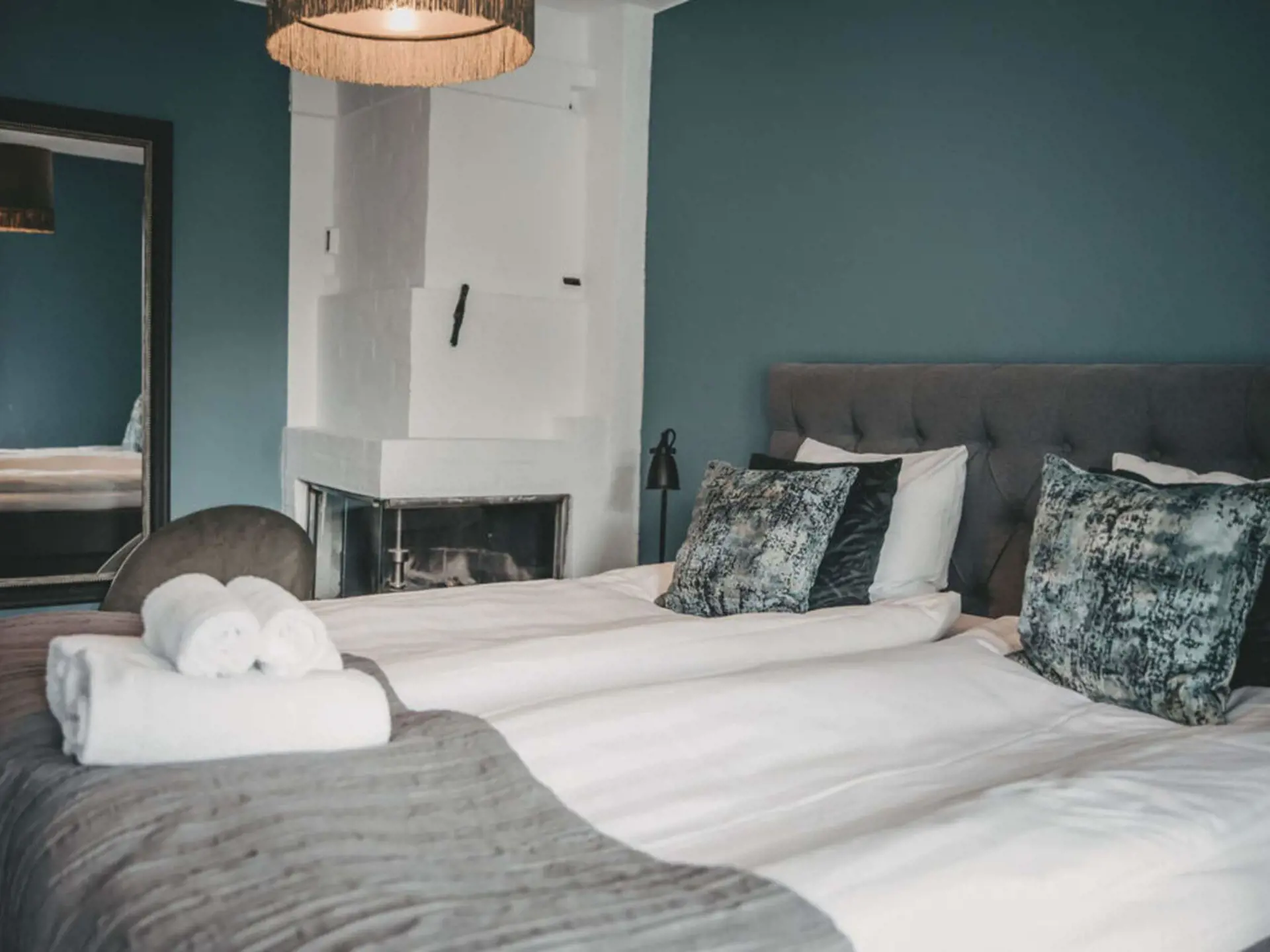 Dieses Doppelzimmer bietet einen luxuriösen Rückzugsort mit einem Doppelbett und einem schicken Badezimmer, das von den Baumkronen inspiriert ist. Jedes Zimmer ist sorgfältig in seinen charakteristischen Farben gestaltet und verfügt über bequeme Sessel und stilvolle Details, die eine warme und einladende Atmosphäre schaffen.