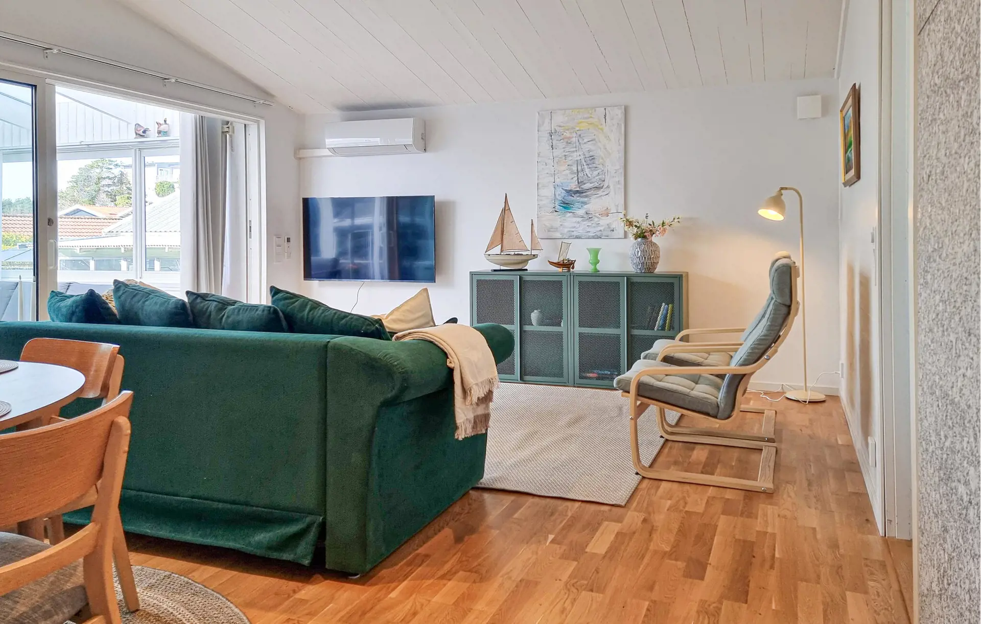 Helle Räume, große Fenster und eine moderne, gemütliche Einrichtung schaffen eine einladende Atmosphäre. Der Wohnbereich mit komfortabler Sofaecke lädt zu entspannten Stunden ein, während die offene Küche und der Essplatz ideal für gemeinsame Mahlzeiten sind. Ein verglaster Wintergarten erweitert den Wohnraum und bietet zu jeder Jahreszeit einen lichtdurchfluteten Rückzugsort.