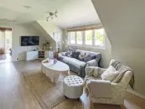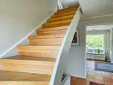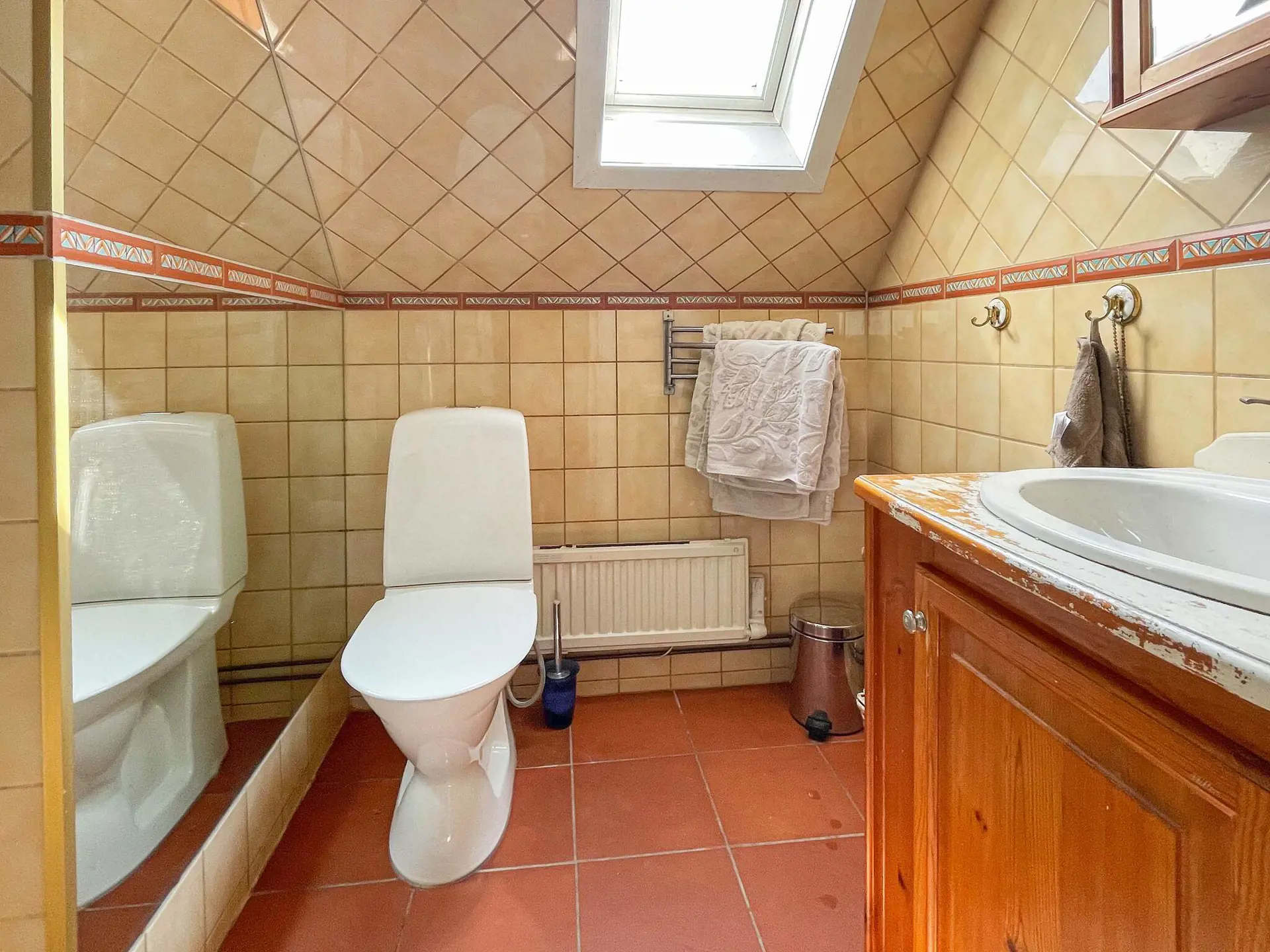 Treppe in die obere Etage mit drei Schlafzimmern, jeweils mit einem Doppelbett mit 180 cm, 160 cm bzw. 140 cm Breite. Ein weiteres Badezimmer mit Dusche und Familienzimmer. Zugang zu einem Balkon, wo Sie den Tag mit einer Tasse frisch gebrühtem Kaffee beginnen können.