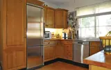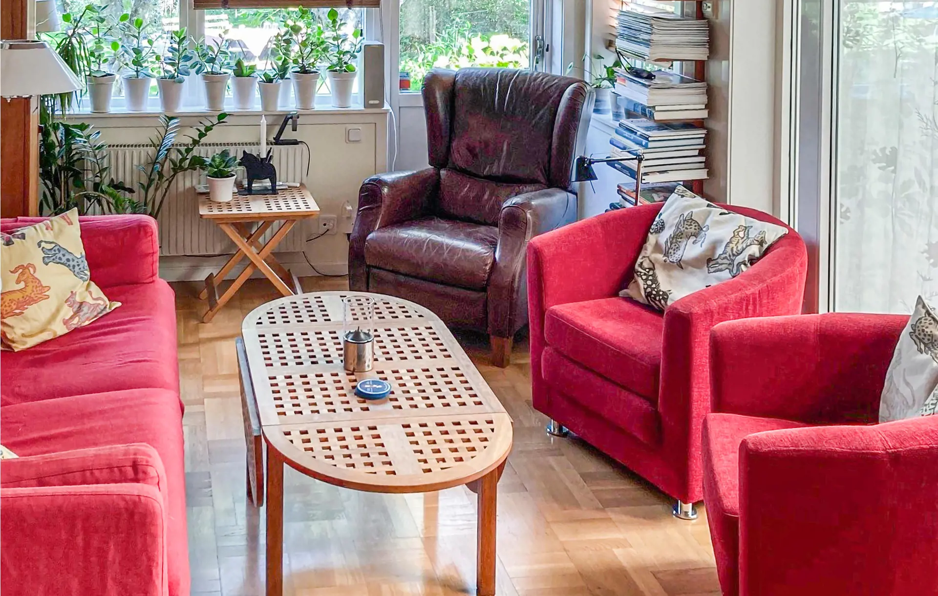 Ferienhaus in idyllischer Villengegend in Göteborg. Hier finden Sie alles, was eine Großstadt zu bieten hat. Aktivitäten, Kultur und Vergnügungen. Eine kurze Autofahrt bringt Sie zu mehreren Galerien, in Shoppingcenter und zu Parks. Ein schönes Ausflugsziel ist Liseberg. Das Ferienhaus hat eine schöne Planlösung mit praktischem Hauswirtschaftsraum und Badezimmer im Keller. Im Erdgeschoss liegt die gut ausgestattete Küche mit guten Arbeitsflächen und einer schöne Essecke. Schönes WC, Bad mit Fliesen. Im Wohnzimmer stehen Kaminofen, Bibliothek, schöne Sofas und ein stilvoller Esstisch. Ausgang zum verglasten, beheizten Wintergarten von hier. Weiter geht es in den Garten, wo Sie Platz zum Spielen und Entspannen haben. Im Obergeschoss sind ein Schlafzimmer für 2 und ein großes Schlafzimmer mit mehreren Betten, Spielzeug und einer kinderfreundlichen Ausstattung.
