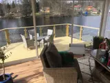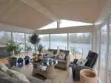 Mit Blick auf den See gibt es einen atemberaubenden Wintergarten mit großen Fenstern in drei Richtungen. Hier verbringen Sie garantiert viel Zeit, denn hier können Sie wunderbar sitzen und die Aussicht bei jedem Wetter genießen, während Sie eine Tasse Kaffee oder ein Glas Wein genießen. Neben dem Wintergarten gibt es eine schöne, offene Terrasse mit Gartenmöbeln, auf der Sie bei gutem Wetter sitzen können.
