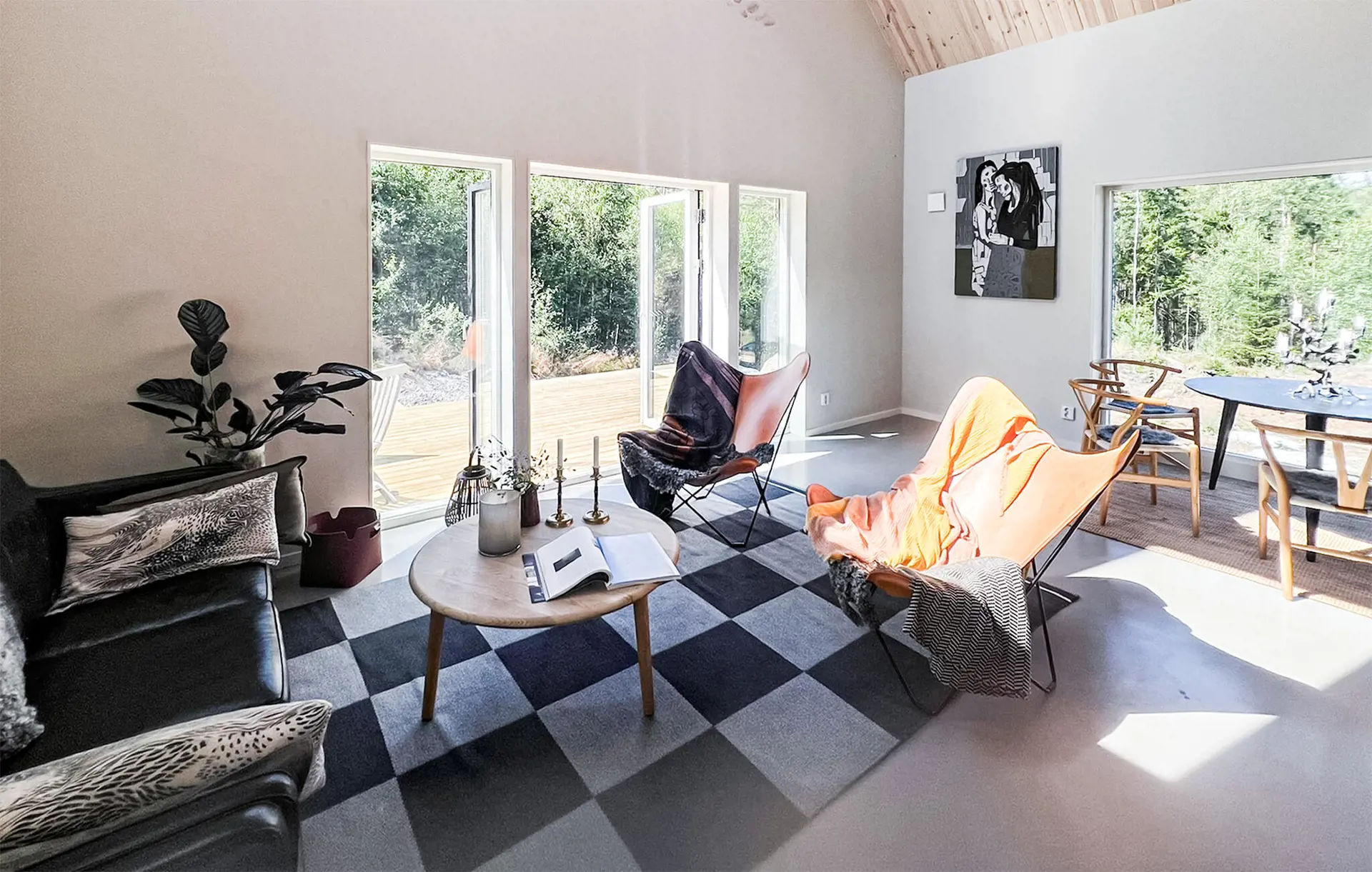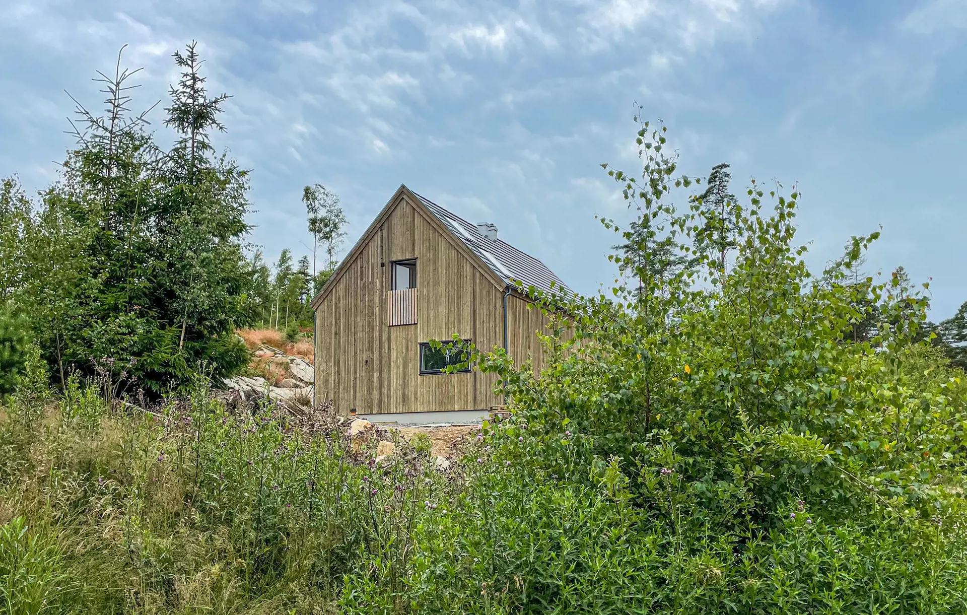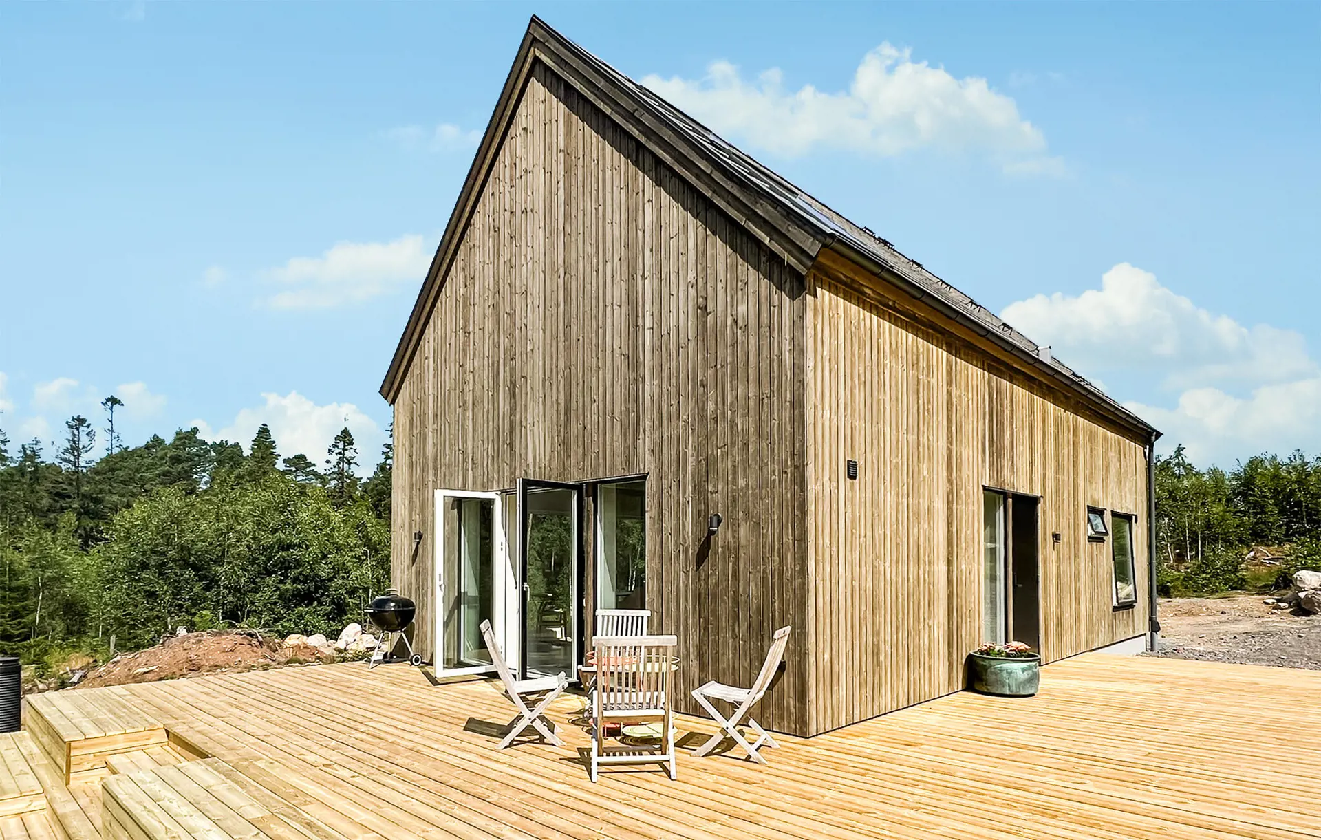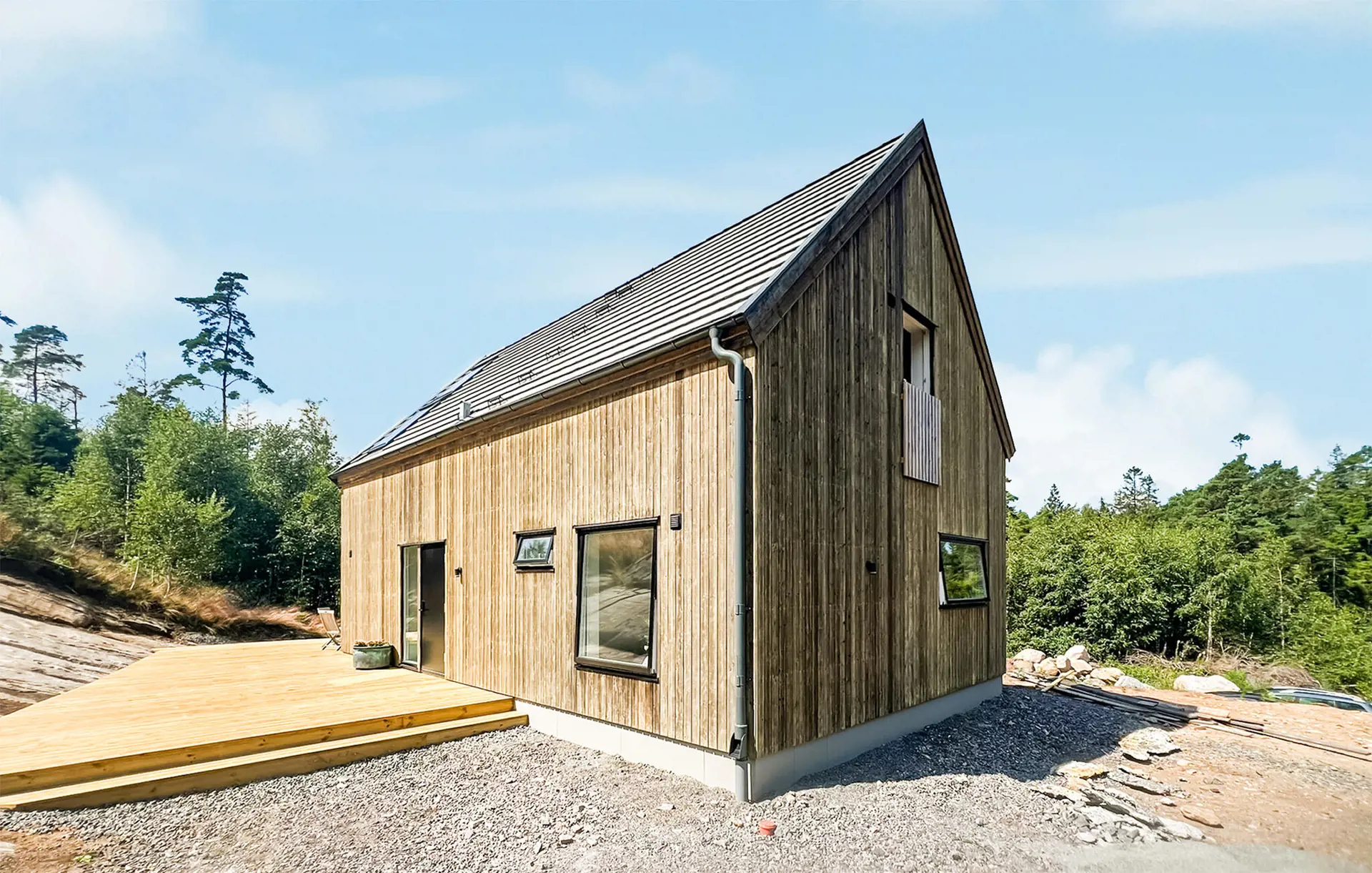 In diesem mit Holz verkleideten Haus vereinen sich Komfort und Behaglichkeit auf eine sehr harmonische Weise. Bodentiefe Fenster lassen viel Tageslicht ins Innere, warmes Holz und ein gemütliches Sofa laden zum Verweilen ein. Egal ob Sie Ihre Lieblingsmusik oder einen Podcast hören, lesen oder gemeinsam in der modernen Küche leckere Mahlzeiten zubereiten – hier gestalten Sie den Tag ganz in Ihrem Rhythmus.