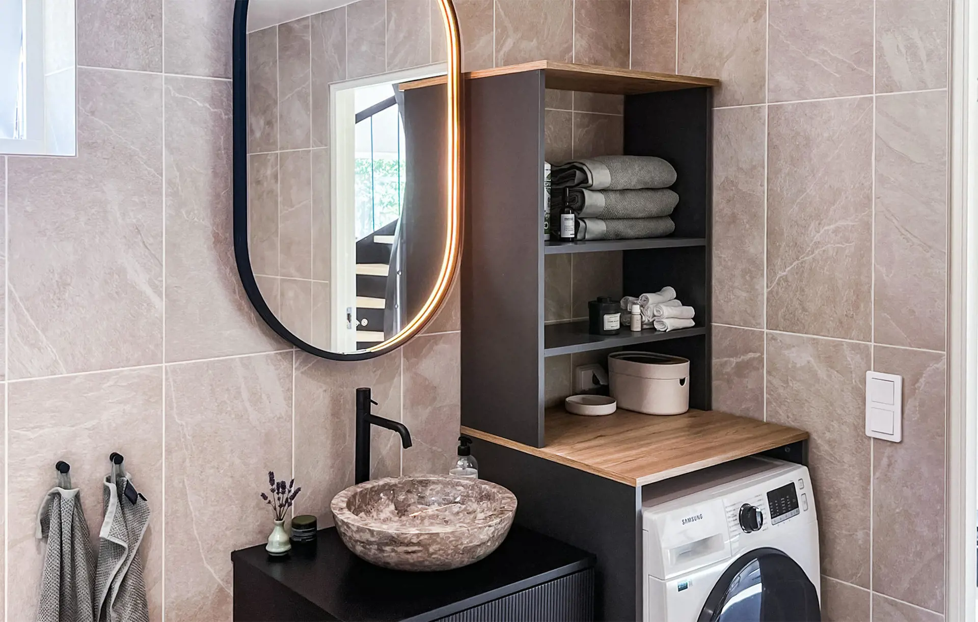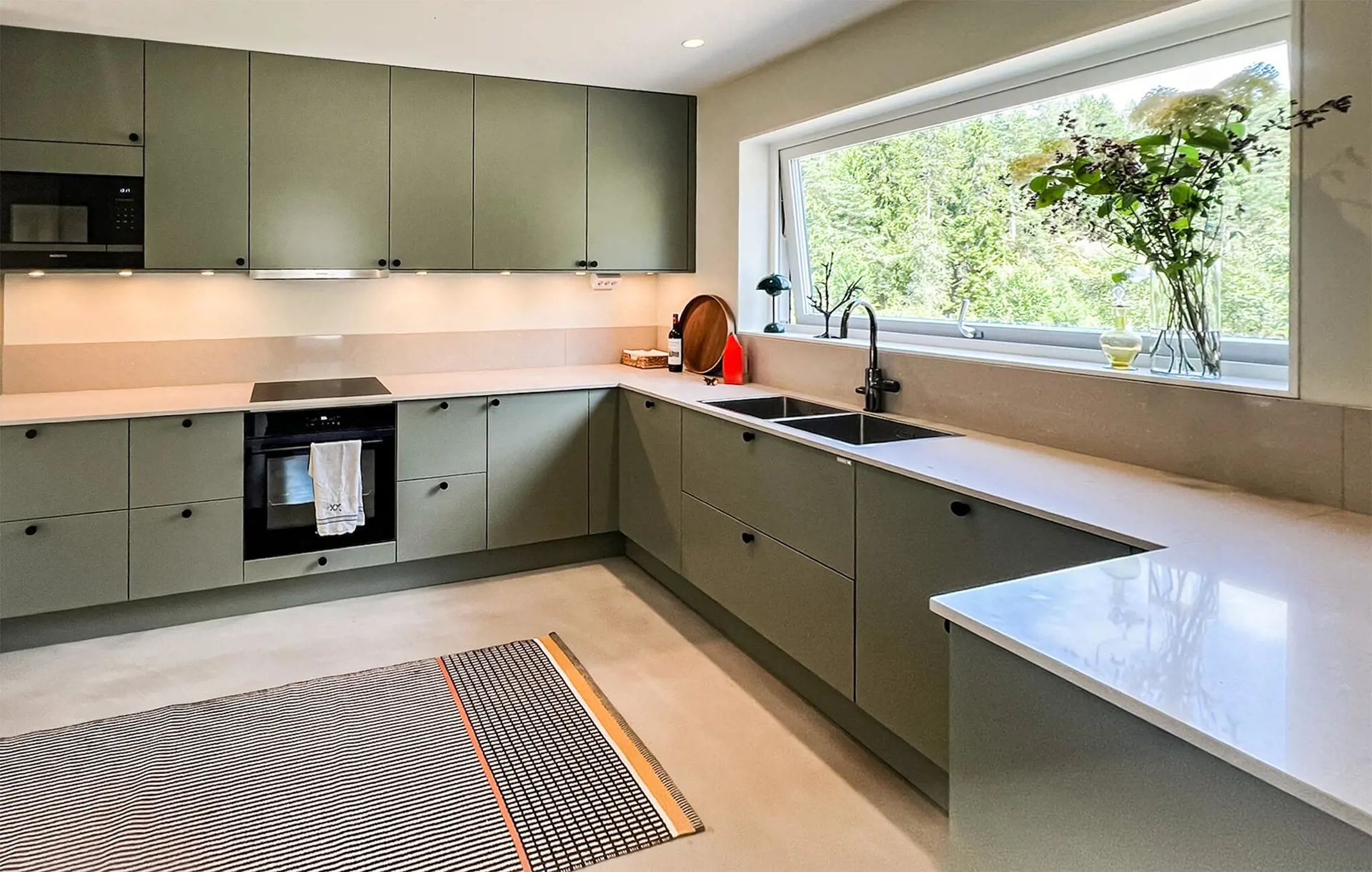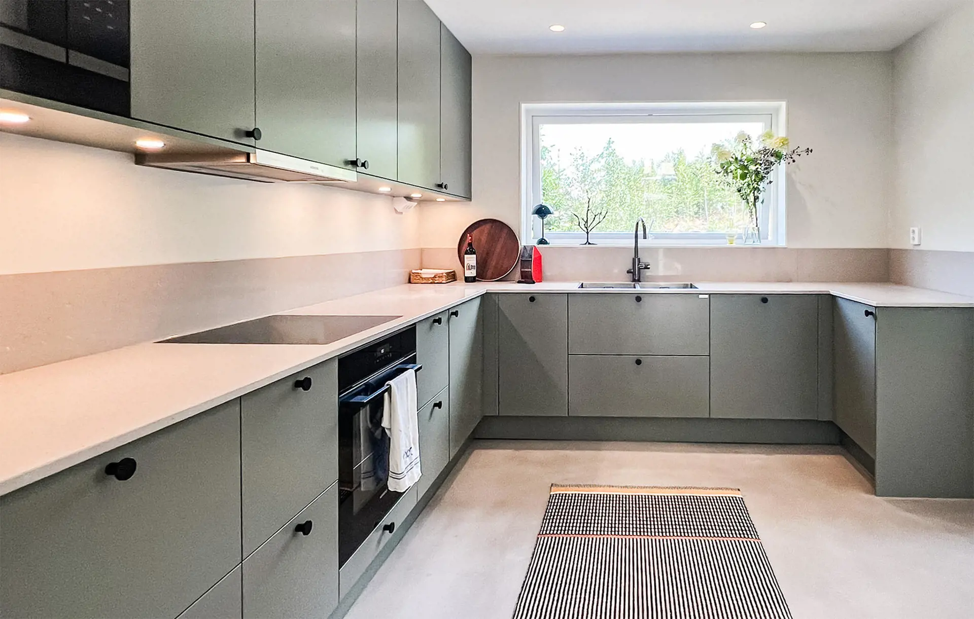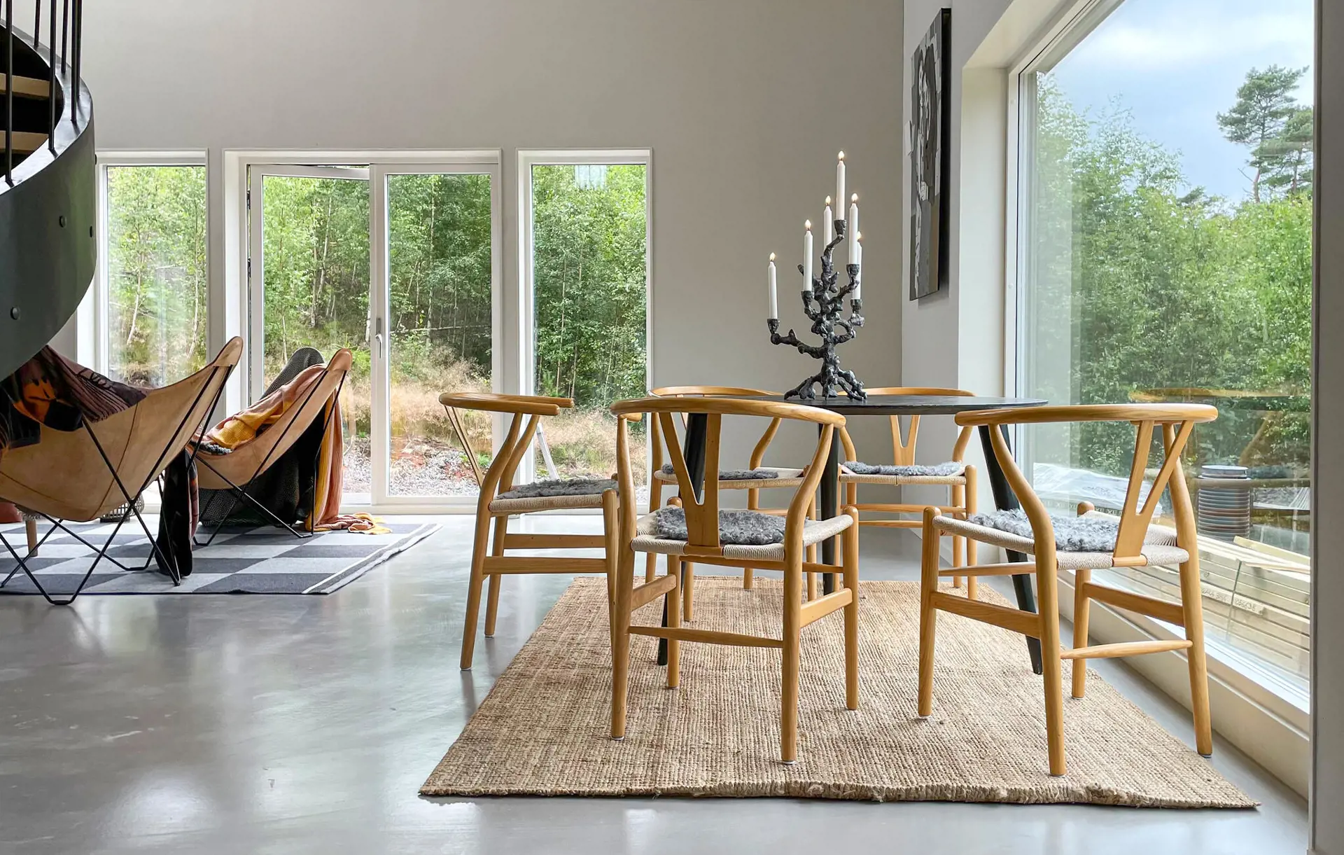 In diesem mit Holz verkleideten Haus vereinen sich Komfort und Behaglichkeit auf eine sehr harmonische Weise. Bodentiefe Fenster lassen viel Tageslicht ins Innere, warmes Holz und ein gemütliches Sofa laden zum Verweilen ein. Egal ob Sie Ihre Lieblingsmusik oder einen Podcast hören, lesen oder gemeinsam in der modernen Küche leckere Mahlzeiten zubereiten – hier gestalten Sie den Tag ganz in Ihrem Rhythmus.