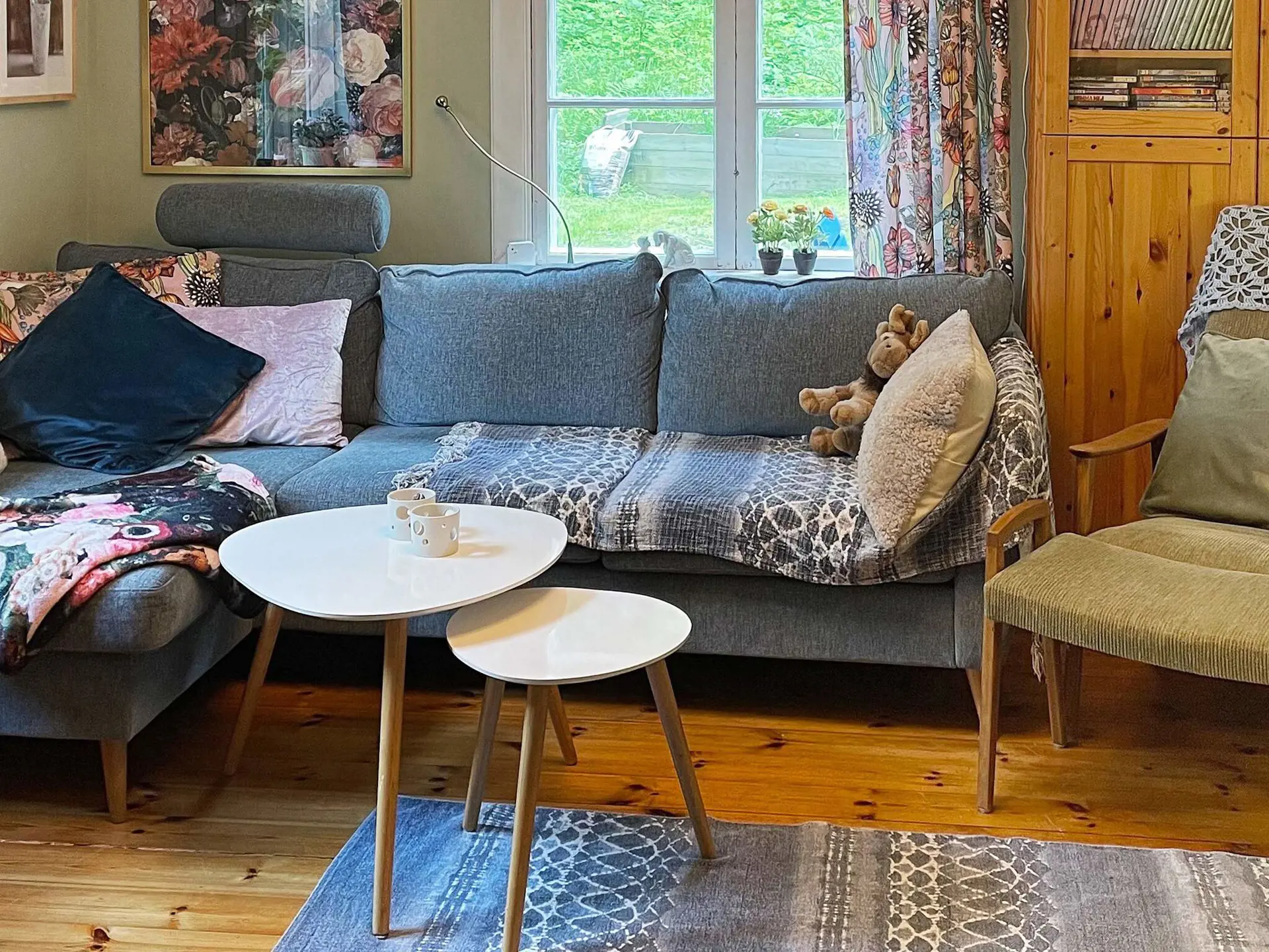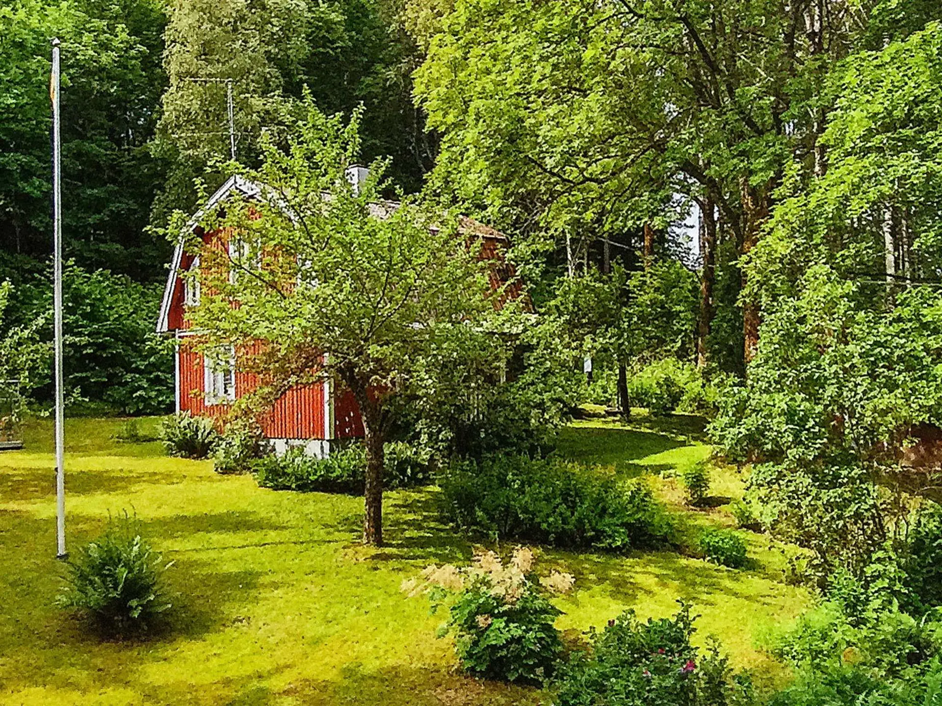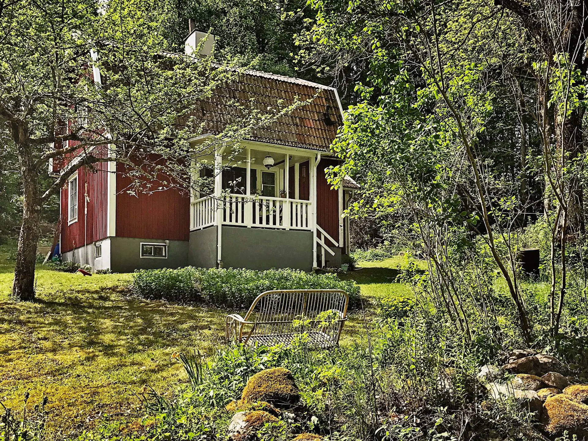 Schön abgeschieden und für sich steht mitten im Grünen und gut geschützt dieses traditionelle, rot-weiße Ferienhaus. Es wurde liebevoll und mit persönlichem Charme eingerichtet.