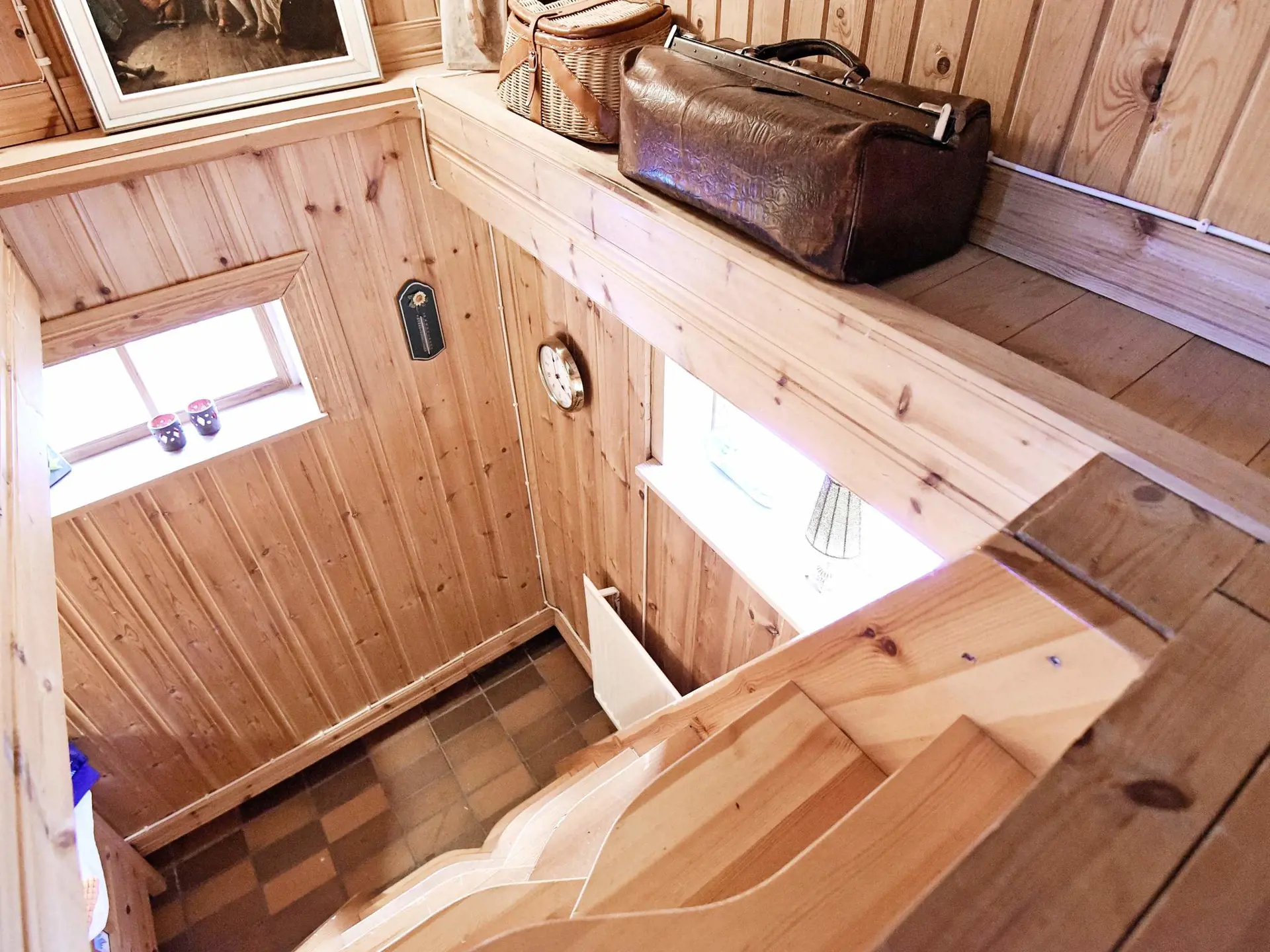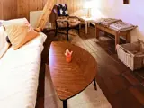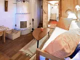 Außerdem zwei Schlafzimmer in der oberen Etage, eines mit Doppel-, das zweite mit Einzelbett. Im der unteren Etage steht im Wohnbereich zudem eine Schlafcouch bereit. Außerdem sind in der Kelleretage auch ein Duschbad und eine Sauna für max. 3 Personen untergebracht. Das Haus eignet sich für max. 4 Personen.