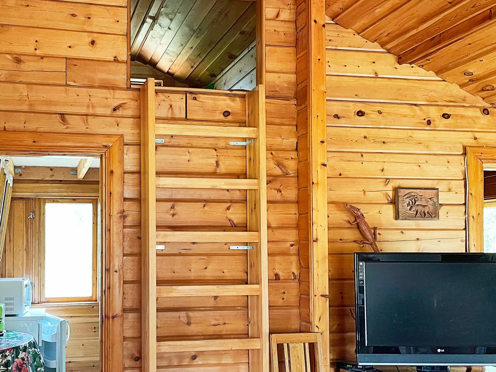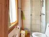 Vom Balkon aus gelangt man direkt in das große Wohnzimmer, das mit seiner schönen Einrichtung an eine klassische Blockhütte in den Bergen erinnert. Direkt links liegt das Badezimmer mit Duschkabine, WC und Waschbecken. Eine Waschmaschine finden Sie im Keller. Der Küchenbereich ist kleiner, bietet aber das meiste, was Sie brauchen könnten. Neben der Küche befindet sich ein kleines Schlafzimmer mit einem eingebauten Etagenbett mit einem breiteren unteren Bett von 120 cm und einem oberen Bett von 80 cm Breite.