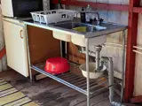Hinter der blauen Tür betreten Sie einen gemütlichen Küchen-/Essbereich für 4 Personen. Es stehen u.a. Mikrowelle, Kaffeemaschine und Brunnenwasser zur Verfügung. Rechts davon befindet sich ein Raum mit Kühl-/Gefrierschrank und daneben ein Schlafzimmer mit einem Etagenbett. Geradeaus vom Essbereich aus findet man das zweite Schlafzimmer mit einem 120 cm breiten und einem 90 cm breiten Einzelbett. Neben dem Schlafzimmer befindet sich das Wohnzimmer mit Sofa, Sessel und Holzofen.