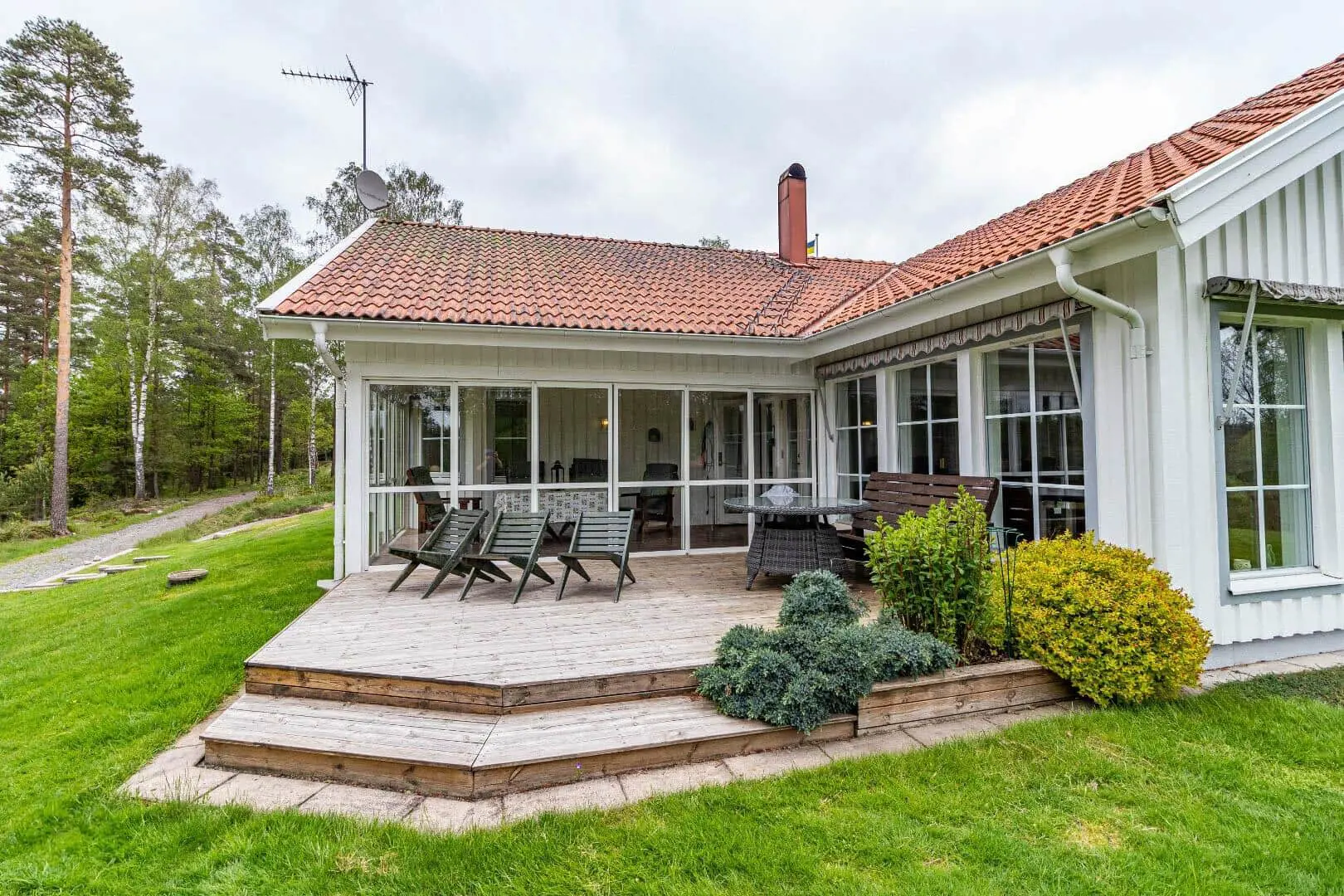 Ferienhaus in Mark, Westschweden, mit Platz für 7 Erwachsene. Es erwartet Sie eine gemütliche Einrichtung mit u.a. Kamin, darüber hinaus sind Waschmaschine und Spülmaschine in dieser Unterkunft vorhanden.