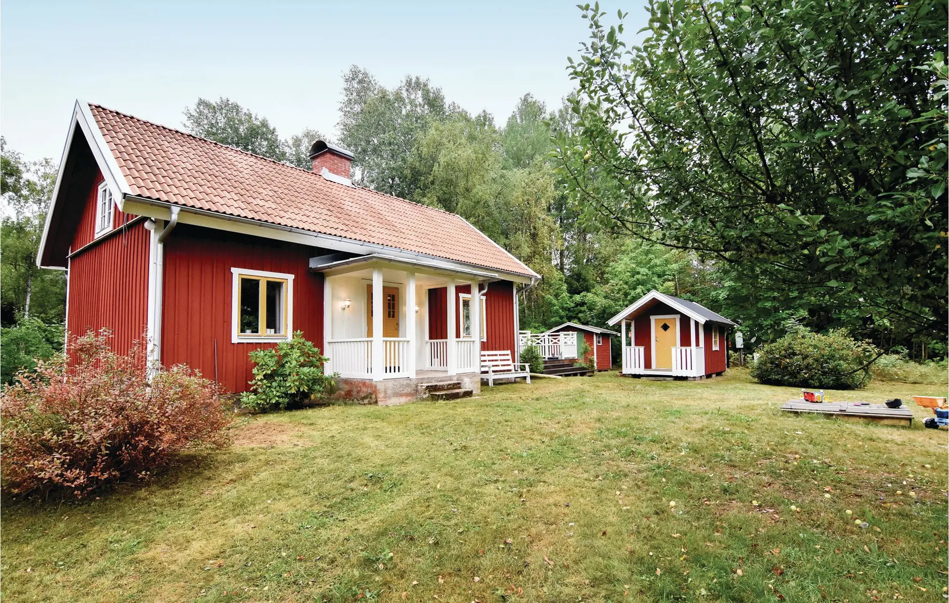 Abgeschieden gelegenes Ferienhaus in der Waldlichtung. Ein sehr schönes Haus für zwei Familien. Gemütliches Schlafzimmer mit Doppelbett, großes Wohnzimmer mit Schlafcouch für 2 und Kaminofen. Eine steile Treppe führt zum einem Aufenthaltsraum mit Schlafcouch, auch für 2. Im Annex stehen zwei Einzelbetten. Auf der großen Terrasse gibt es einen Grill. Einen schönen Rasen zum Spielen und einen Wald mit Elchen gibt es auch beim Haus. Fünf Kilometer entfernt besteht die Möglichkeit im See Unden zu baden und angeln. Der nächste größere Ort ist Töreboda, er liegt sehr schön am Göta-Kanal. Hier finden Sie die kleinste Fähre Schwedens, sie wird von Hand von einem Ufer zum anderen gezogen, die Überfahrt dauert knapp eine halbe Minute.