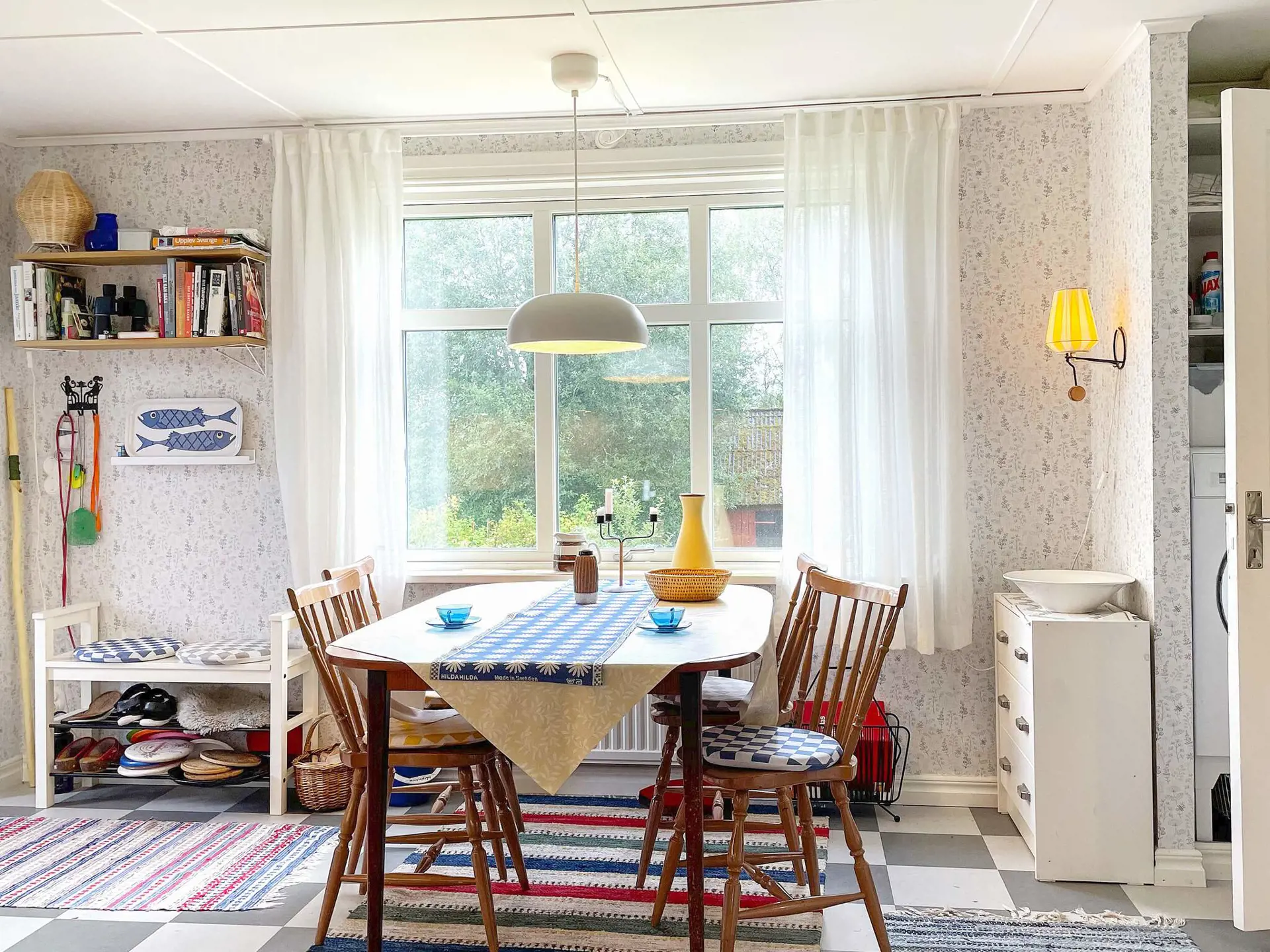 Das ältere Ferienhaus bietet wohnlichen Charme. Das Interieur ist warm und persönlich, wobei Neues auf Altes im klassischen, schwedischen Stil trifft. Der Garten draußen ist groß. An der Rückseite des Hauses können Sie draußen völlig ungestört sitzen und die Kinder haben viel Platz zum Toben.