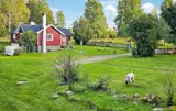 Nutzen Sie den weitläufigen Außenbereich für entspannte Stunden in der Natur. Genießen Sie Ihr Frühstück auf der Terrasse, während Sie den Blick über das grüne Grundstück schweifen lassen. Beobachten Sie mit etwas Glück Rehe und Elche oder statten Sie den Pferden, Hühnern und Ziegen einen Besuch ab. Unternehmen Sie Spaziergänge durch die umliegenden Wälder oder erkunden Sie die Umgebung auf einer Fahrradtour.