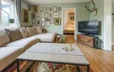 Ihr gemütliches Ferienhaus außerhalb von Borås bietet Ihnen eine idyllische Auszeit in ruhiger Umgebung. Hier genießen Sie Natur pur, mit Wäldern, Wiesen und tierischen Hofbewohnern direkt vor der Tür. Lassen Sie den Alltagsstress hinter sich und entspannen Sie in dieser einladenden Unterkunft. Machen Sie es sich im liebevoll und gemütlich eingerichteten Wohnbereich bequem. Die großzügige Sofalandschaft lädt zu entspannten Abenden ein, während die geschmackvoll dekorierten Wände eine warme Atmosphäre schaffen. Speisen Sie gemeinsam am großen Esstisch und verbringen Sie hier gesellige Stunden. Die Küche bietet ausreichend Platz zum gemeinsamen Kochen, und der Kamin sorgt an kühleren Tagen für eine behagliche Stimmung.