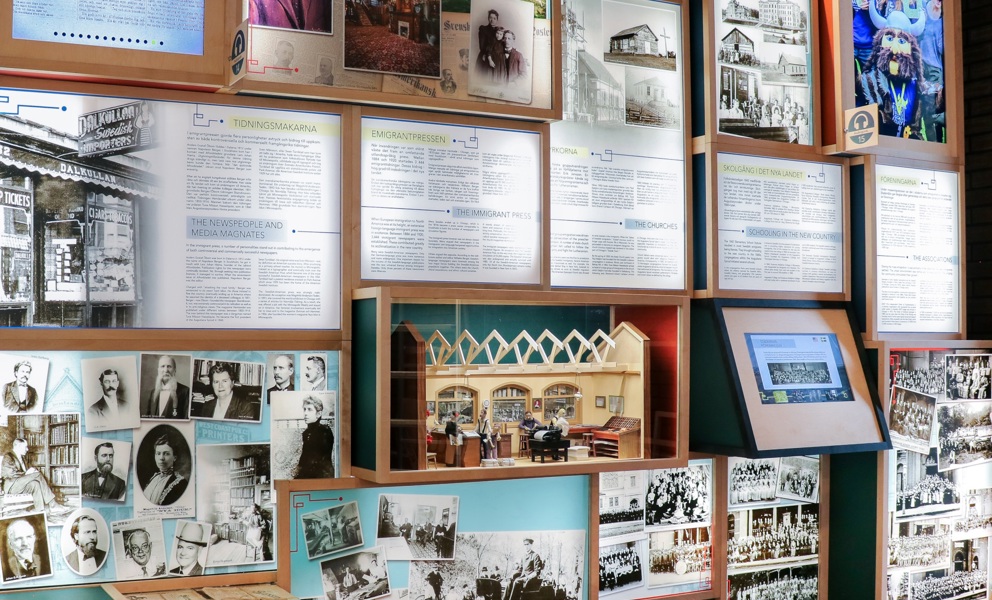 Das Haus der Auswanderer schildert anschaulich jene Zeit, als fast ein Viertel der Bevölkerung die Heimat verließ, verlassen musste. Ein Schwerpunkt gilt dem Schicksal der Emigranten in der Neuen Welt, ein anderer dem Schriftsteller Vilhelm Moberg und seinen (verfilmten) Romanen über die Auswanderer. Das zugehörige Emigranten-Institut mit Archiv und Forschungszentrum hat schon vielen Schweden dabei geholfen, ihre Verwandten in Nordamerika ausfindig zu machen.